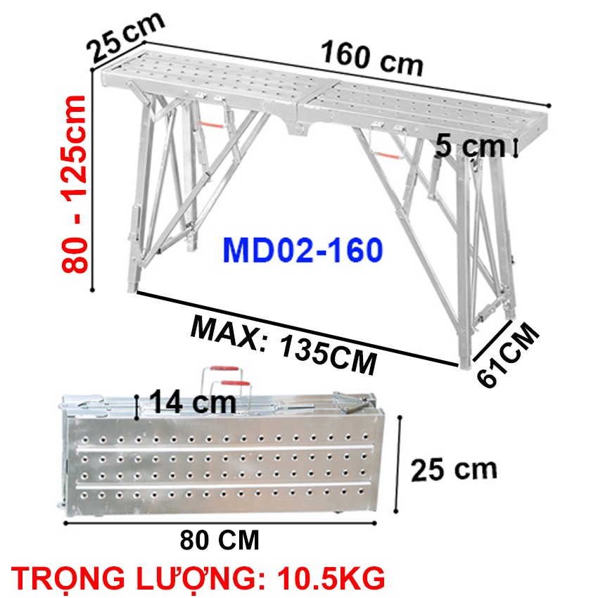 Mẫu MD02 cực kì phù hợp với những người có nhu cầu sử dụng giàn giáo cao như dân công trình tuy việc Setup từ trạng thái gấp gọn sang sử dụng lâu hơn phức tạp hơn nhưng giàn cực kì chắn chắc có thể dùng đến 3 người cùng 1 lúc.
