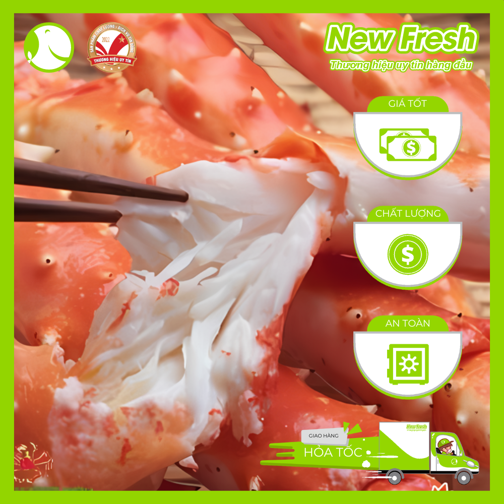- Hướng dẫn sử dụng: hấp, nướng, sốt Cajun,… CHÂN CUA HOÀNG ĐẾ HẤP Cua hoàng đế được xem là một " Món quà quý giá" mà đại dương ban tặng cho con người, quá trình đánh bắt cực khổ vì cua ẩn trú trong những chiếc hang nằm trong lòng biển khơi. Đặc điểm của Chân Cua Hoàng Đế ? Chân cua hoàng đế Kingcrab được tách ra từ cua hoàng đế nguyên con. Loại cua này rất hiếm và khó đánh bắt, người ta thường đánh bắt chúng ở những vùng có nhiều bão biển. Cua hoàng đế có kích thước lớn hơn rất nhiều so với các loại cua biển, sở hữu những cặp chân dài, thịt nhiều, thớ thịt mềm và đầy quyến rũ nên Cua Hoàng Đế nổi tiếng là đẳng cấp nhất thế giới loài cua. Có một sự thật mà cả thế giới phải công nhận ở Cua Hoàng Đế đó chính là hương vị và kích thước thuộc hạng đặc biệt và thơm ngon nhất. Khi còn sống, Cua Hoàng Đế chỉ cư ngụ ở những vùng biển băng giá, độ mặn và độ lạnh cao nên cua tuyệt đối sạch. Trọng lượng mỗi con từ 2-7 kg, với những cặp chân dài, to khỏe và chiếc mai phồng to, có nhiều gai màu tía sẫm. Nhưng khi chế biến lại chuyển sang màu đỏ tươi hấp dẫn vô cùng. Dinh dưỡng từ chân Cua Hoàng Đế Hấp? Với thành phần dinh dưỡng phong phú: