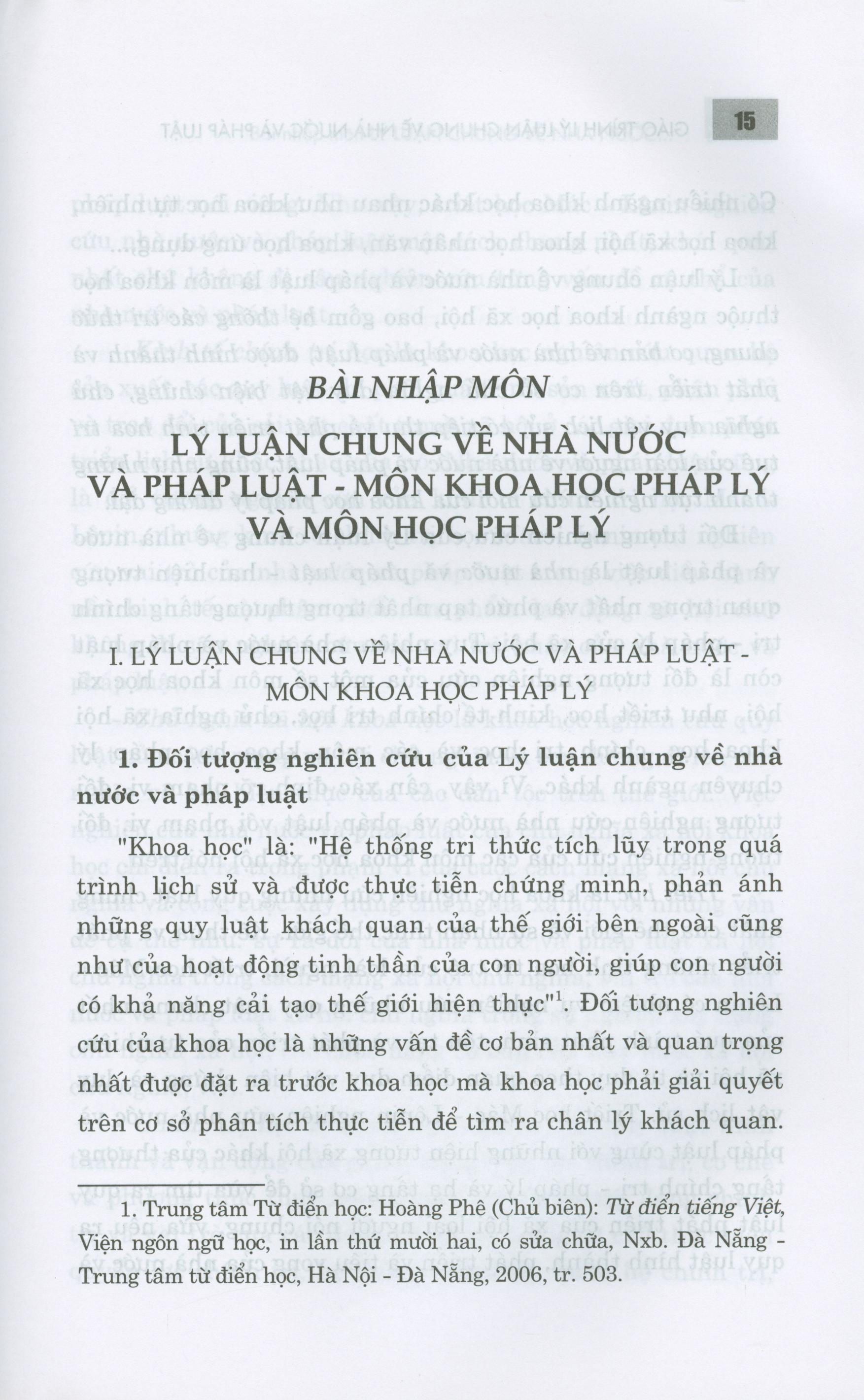 Nhằm đáp ứng ngày càng tốt hơn nhu cầu nghiên cứu, giảng dạy, học tập môn học Lý luận chung về nhà nước và pháp luật, Nhà xuất bản Chính trị quốc gia Sự thật tái bản có chỉnh sửa, bổ sung cuốn sách Giáo trình Lý luận chung về nhà nước và pháp luật (dành cho đào tạo đại học, sau đại học và trên đại học ngành Luật) do PGS.TS. Vũ Trọng Lâm làm Chủ biên. Giáo trình này trình bày có hệ thống các kiến thức cơ bản của môn học Lý luận chung về nhà nước và pháp luật, trên cơ sở kế thừa kiến thức khoa học đã được thừa nhận chung, đồng thời tiếp thu có chọn lọc