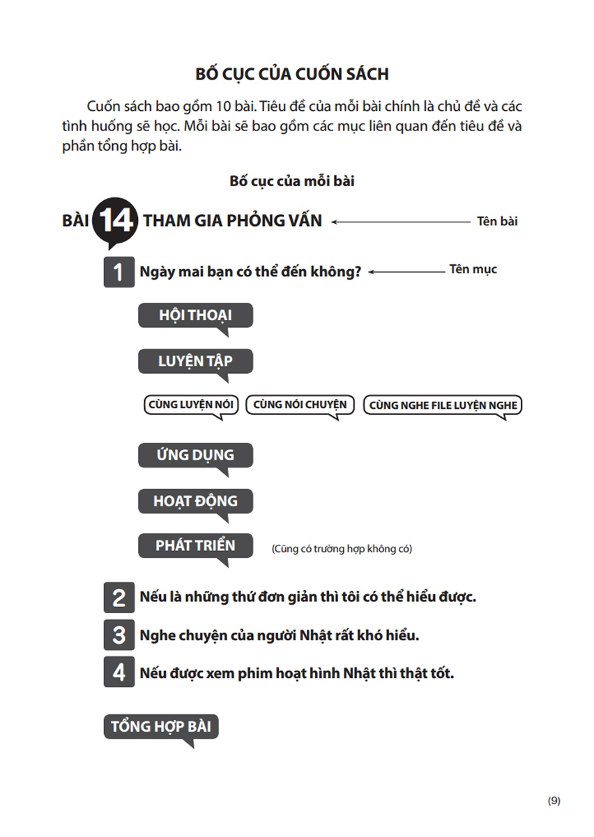 Seri Giáo Trình Tiếng Nhật Tổng Hợp Dành Cho Người Việt gồm hai tập và tương ứng sẽ có giáo trình “luyện tập và ngữ pháp” kèm theo. Cả bộ giáo trình gồm 2 tập với 22 bài học, mỗi bài học sẽ được thống nhất trong cùng một chủ đề. Các chủ đề được đưa ra bao gồm: Tự giới thiệu bản thân, mời, mua sắm, tiệc, bệnh viện, thăm hỏi, phỏng vấn, hỏi đường, sở thích, ấn tượng về Nhật Bản, về đất nước của bạn, du lịch, ước mơ trong tương lai, đồ ăn, sự kiện, giáo dụ
