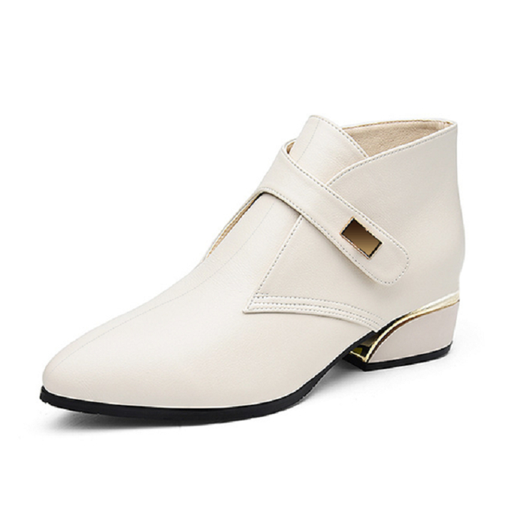 ROSATA - thương hiệu giày thời trang nữ cao cấp THUẦN VIỆT NHƯNG CHẤT LƯỢNG QUỐC TẾ ---- Giày bốt nữ cổ ngắn màu trắng kem 4p RO308 ROSATA tại BCASHOP khóa nút tiện lợi,