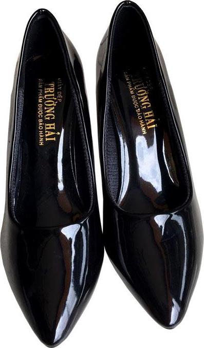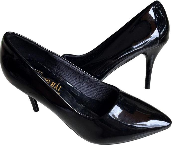 ✨Giày cao gót 7cm Trường Hải gót nhọn da bóng đen thời trang nữ cao cấp êm ái CG088
