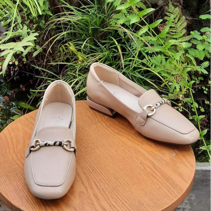 - Tên sản phẩm:Giày lười nữ da bò đế bệt khóa ngang Trường Hải nhiều màu GM123V - Chất liệu: giày được làm bằng da bò thật mềm mại tuyệt đối không bong tróc hay