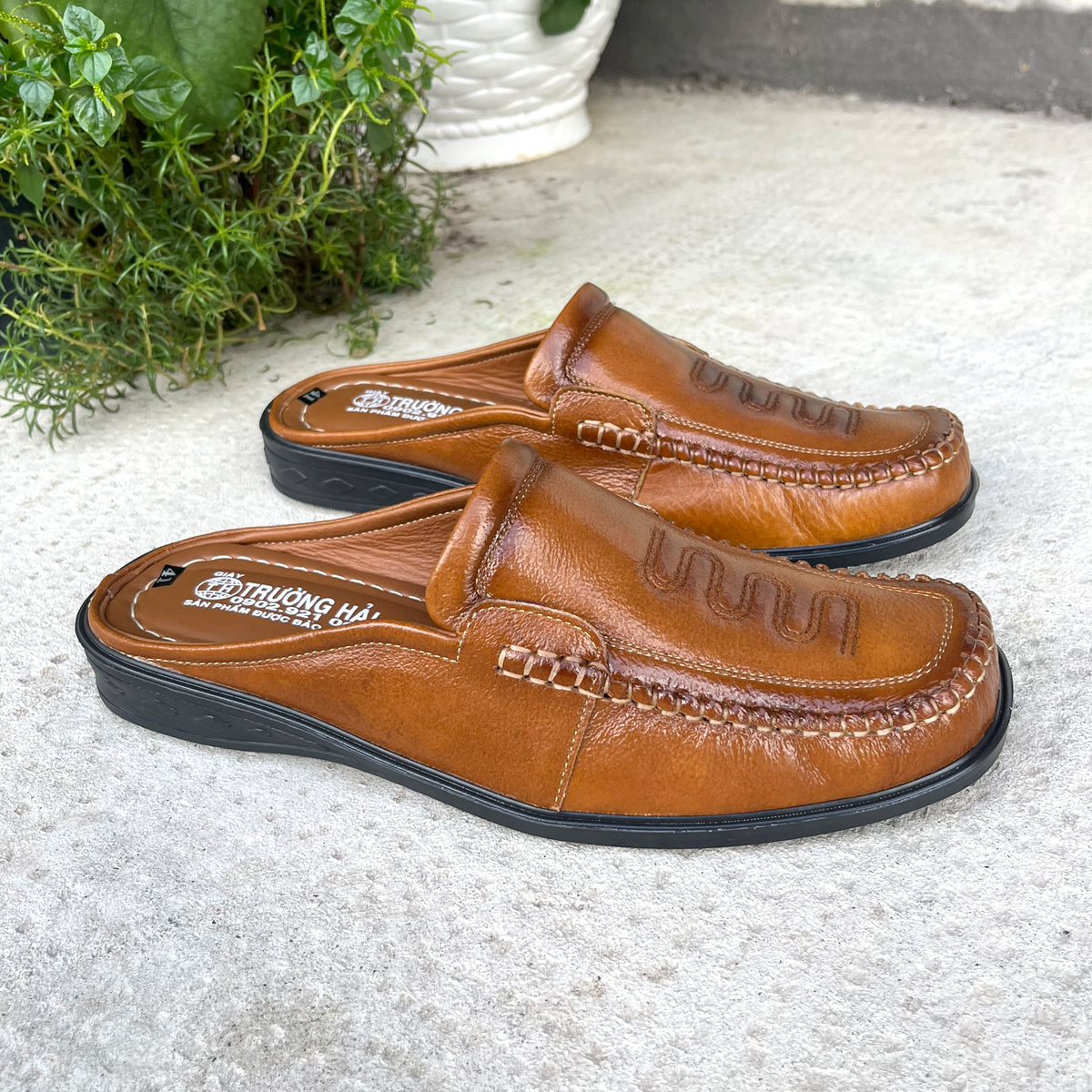 Giày mọi nam nâu Trường Hải da bò cao cấp