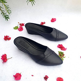 Giày Sục Nữ Giày Đế Xuồng Da Bò Thật Cực Mềm Gót Cao 5cm Evelynv 5P1316 (Đen)