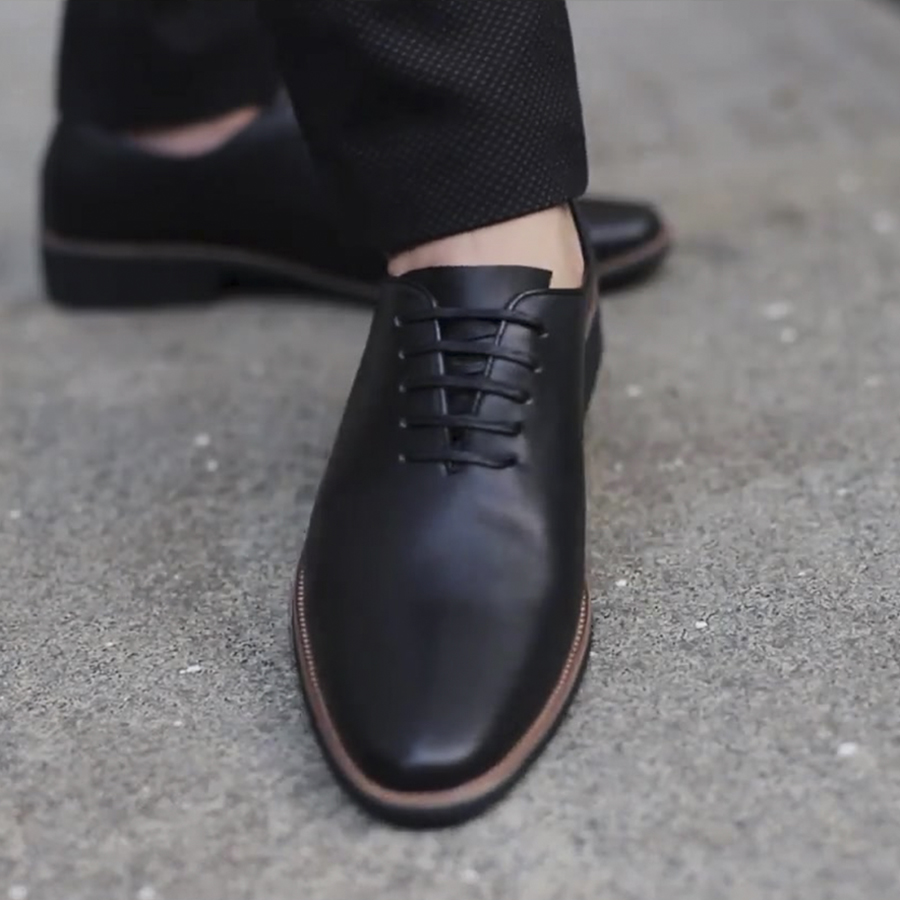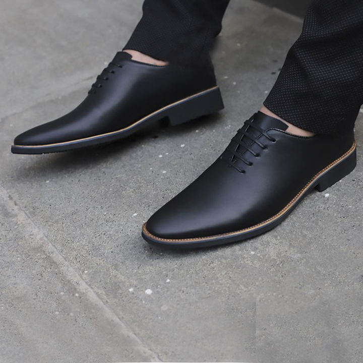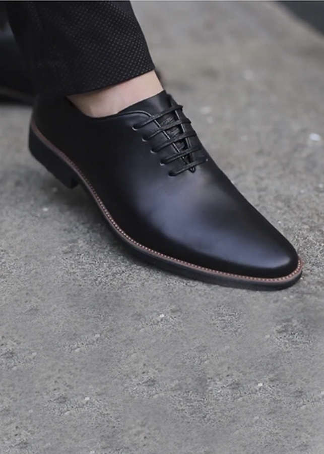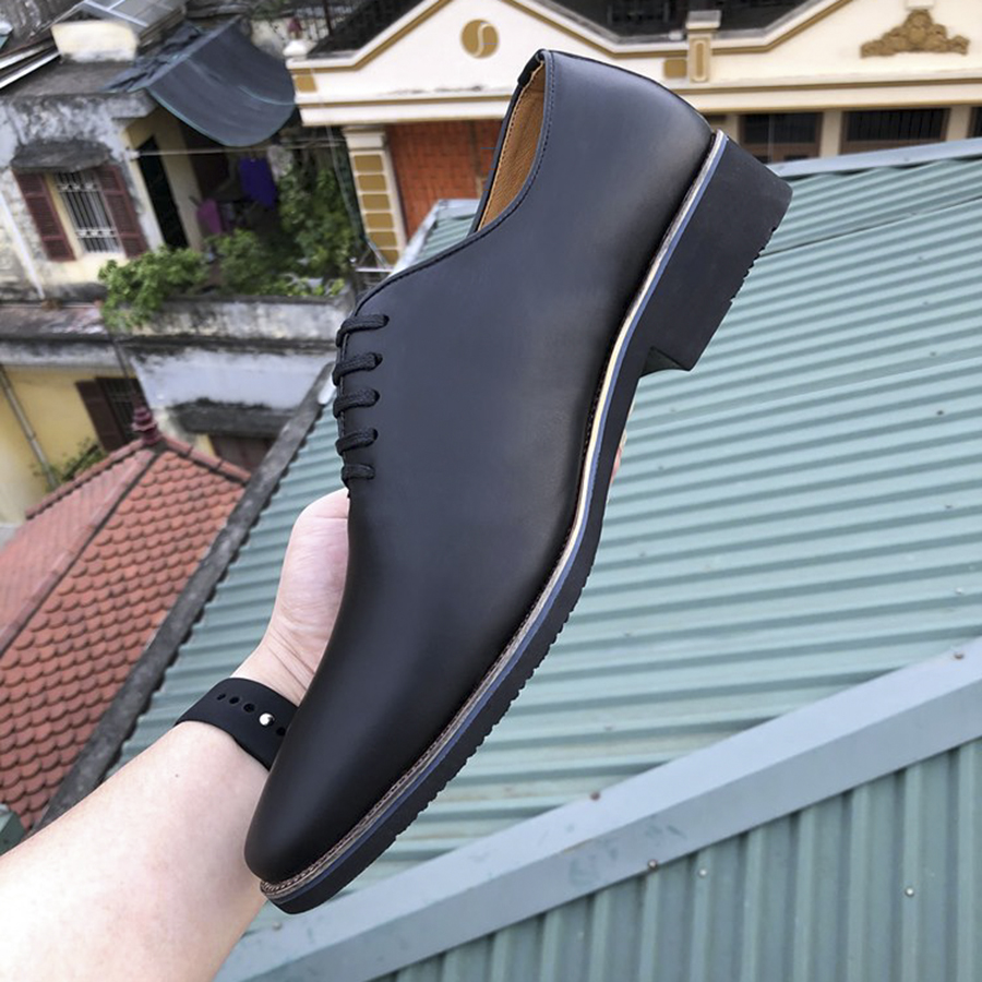 Giày tây nam đẹp da mềm mịn Blackman- Đế diễu- Dây buộc- Da Bò Nhập Khẩu Nguyên Tấm - Hành 1 Năm