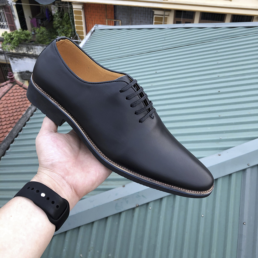 Giày Tây Nam Da Bò Thật Cao Cấp Đế Phíp Gỗ Màu Đen
