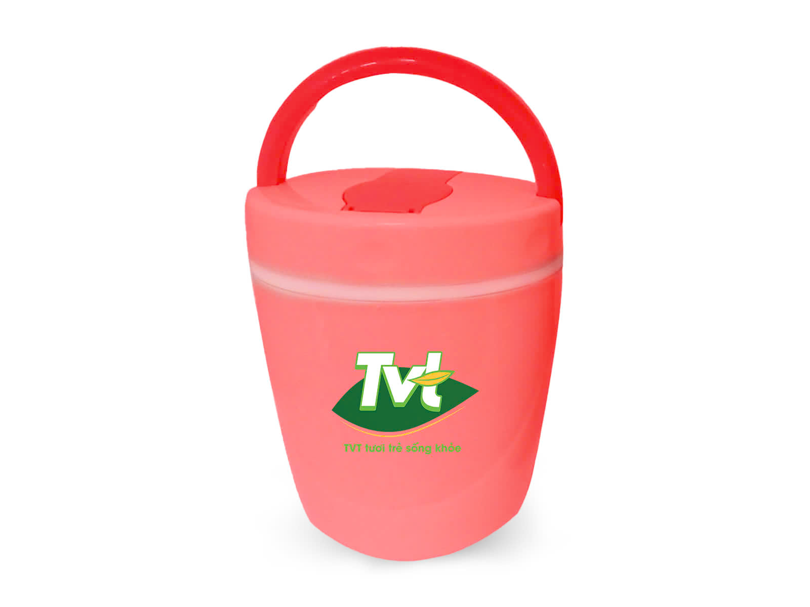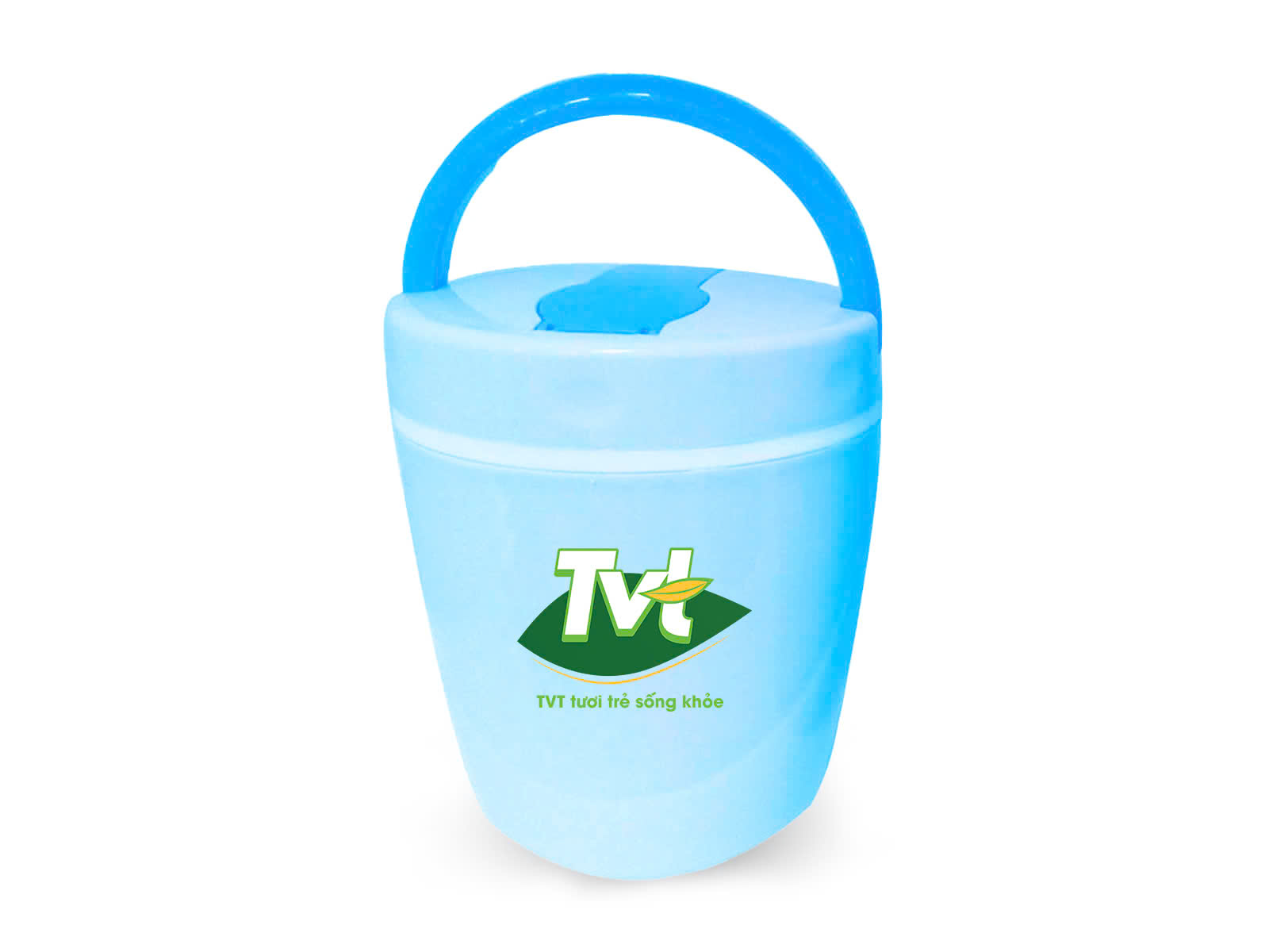 Hình dáng: Hình trụ có nắp đậy Chất liệu: Nhựa Công dụng: Đựng thức ăn hoặc thức uống Không sử dụng ở nhiệt độ >100 độ C