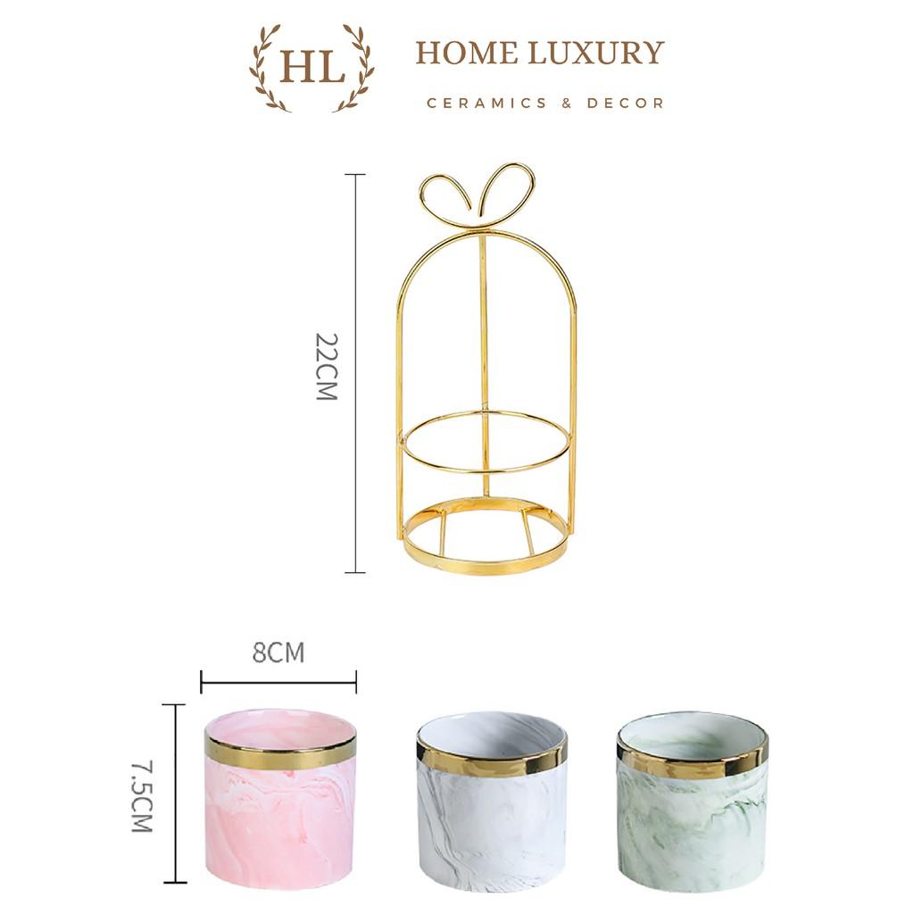 ✨Giỏ Sứ khung hợp kim mạ vàng | LẴNG SỨ VÂN ĐÁ | GIỎ SỨ VÂN ĐÁ