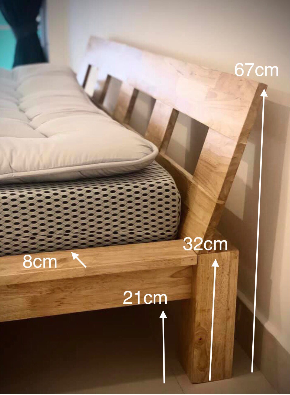 - Chất liệu: Gỗ caosu/ vạt giường nan gỗ thông.
