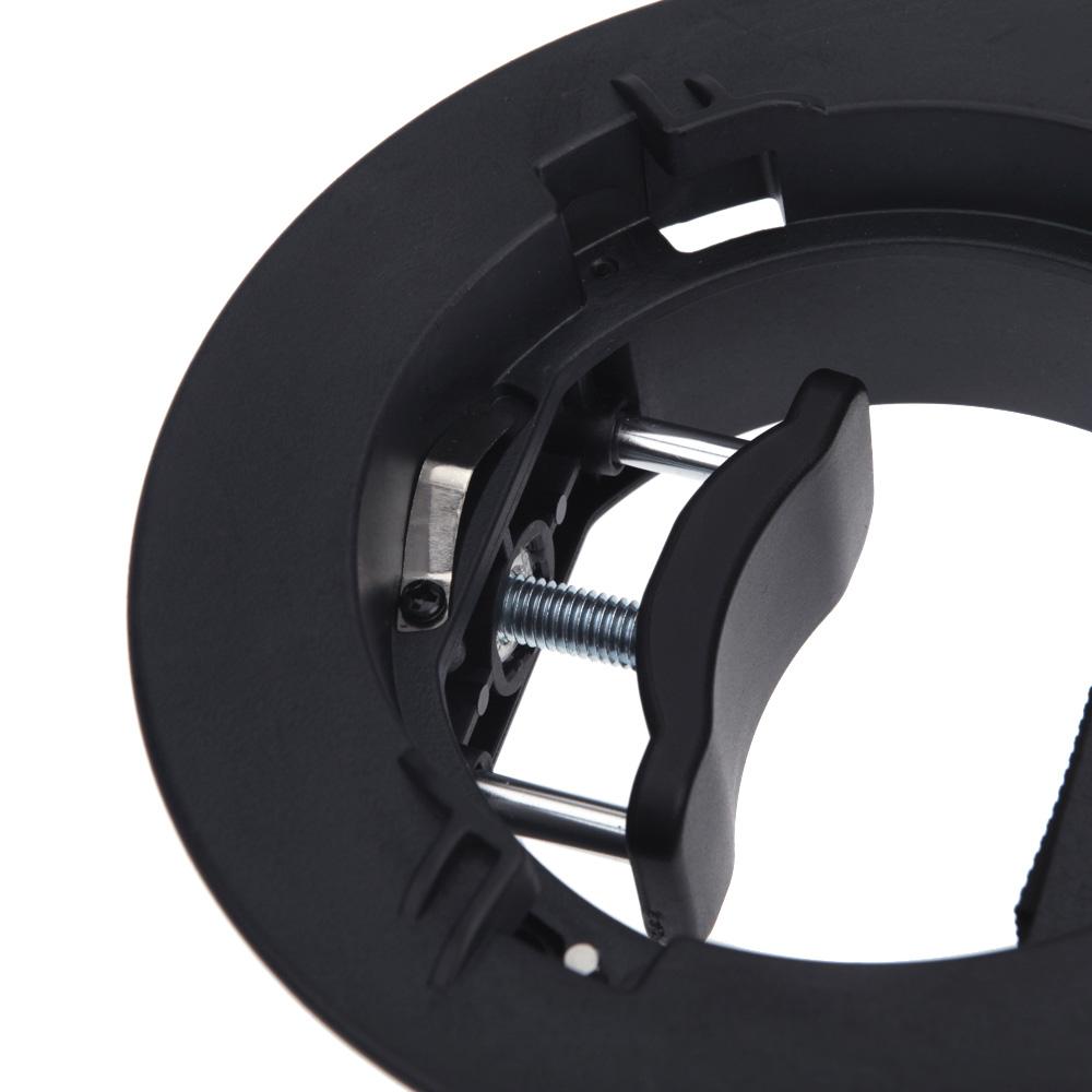 Features: S-type bracket combines other fours (L-type Bowens, T-type Bowens, L-type speed ring, T-type speed ring). No pre-assembly and post-disassembly. Unique speedlite mounting way: mounted horizontally or vertically by wrapping speedlite body. Reliable mounting: no