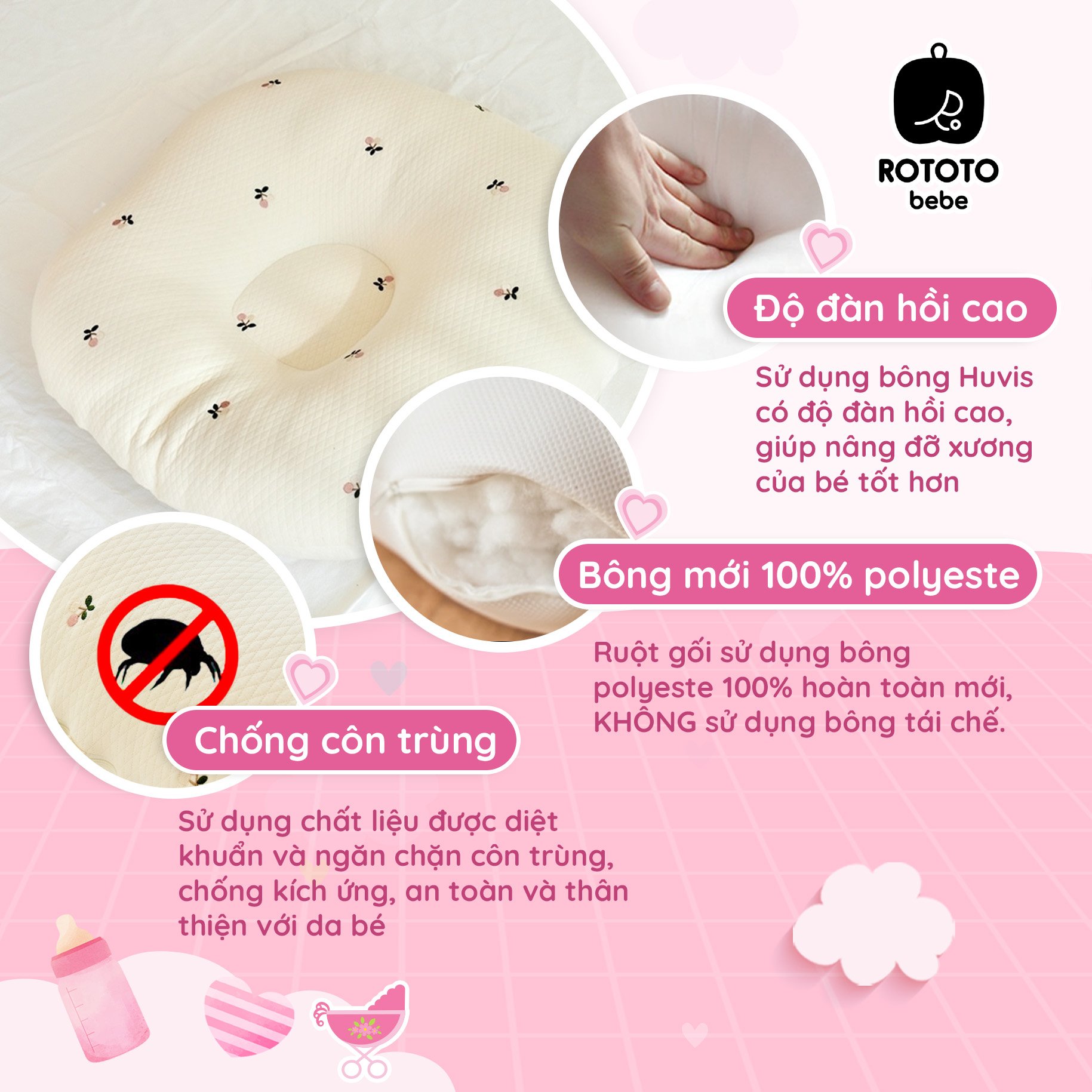 Gối chống trào ngược Rototo Bebe giúp hạn chế trào ngược, nôn trớ cho bé