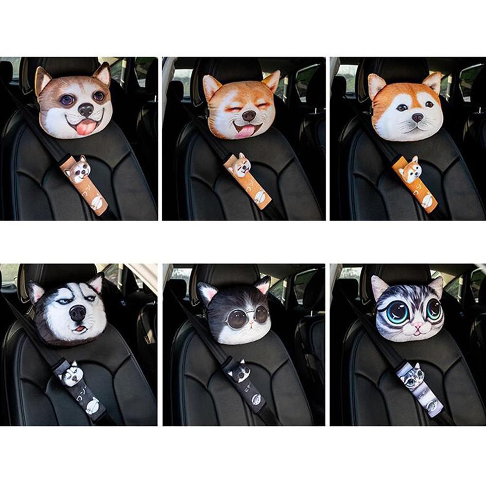 Gối Tựa Cổ & Bọc Dây Đeo An Toàn Hình Thú Cưng Chó Husky - Tiện Lợi & Đáng Yêu Cho Mọi Chuyến Đi!