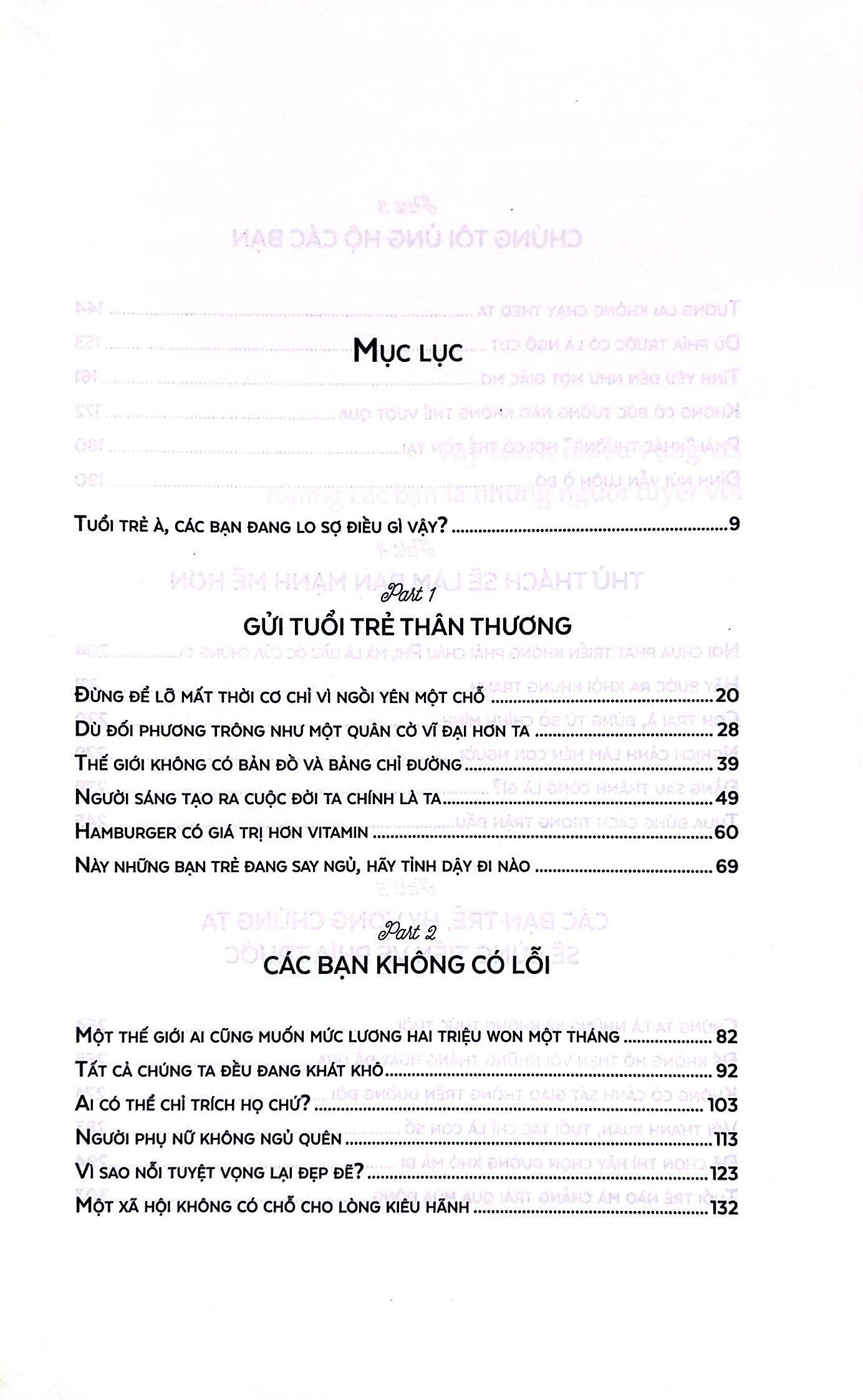 Cuốn sách là những lời nhắn gửi của tác giả Kim Wook, một người 75 tuổi vẫn không ngừng nỗ lực để hoàn thành giấc mơ của mình và thành công trên con đường mình đã chọn. Gửi tuổi trẻ thân thương là lời tự thuật chân thành, cảm động về cuộc đời tác giả, cũng là những lời động viên đây thuyết phục mà ông gửi tới các bạn trẻ. Đối với ông, những hạn chế trong cuộc sống có thể trở thành vật cản, nhưng cũng có thể trở thành bước đệm khuyến khích chúng ta tiến hoá, bay lên cao, vươn xa hơn những đồng loại bình thường. Tuổi trẻ không phải một giai đoạn trong cuộc đời mà là ý chí bền bỉ, sức tưởng tượng phong phú và cảm xúc đầy mãnh liệt. TRÍCH ĐOẠN: Tất cả mọi người đều muốn thành công. Để thành công, ta vào đại học, gắng sức học những môn mình ghét, Cam chịu trong mối quan hệ với người khác, Lấy cái tôi đã bị tổn thương ra nhắm rượu để xoa dịu nỗi lòng cay đắng. Chính vì thế, ta hiểu rất nhiều về bí quyết giành chiến thắng, phương pháp để thành công. Tuy nhiên, ta lại chẳng biết điều gì mới thực sự quan trọng. Có lẽ nên nói rằng không hẳn là ta không biết, mà là không định biết thì đúng hơn. Chúng ta không hiểu phải làm thế nào để thua đúng cách trong trận đấu. GIỚI THIỆU TÁC GIẢ: KIM WOOK. Từng là một phóng viên làm việc với rất nhiều tòa soạn, đồng thời cũng là một dịch giả của rất nhiều cuốn sách khác nhau (chủ yếu từ tiếng Nhật). Tuy ông luôn mong muốn trở thành một tác giả từ năm 15 tuổi, nhưng đến tận năm 75 tuổi ông mới hoàn thành được giấc mơ này. Một đóa hoa nở muộn giữa văn đàn Hàn Quốc, tràn đầy nhiệt huyết, bất chấp tuổi tác, hiện nay ông vẫn là một tác giả và dịch giả vô cùng năng nổ trong giới xuất bản .