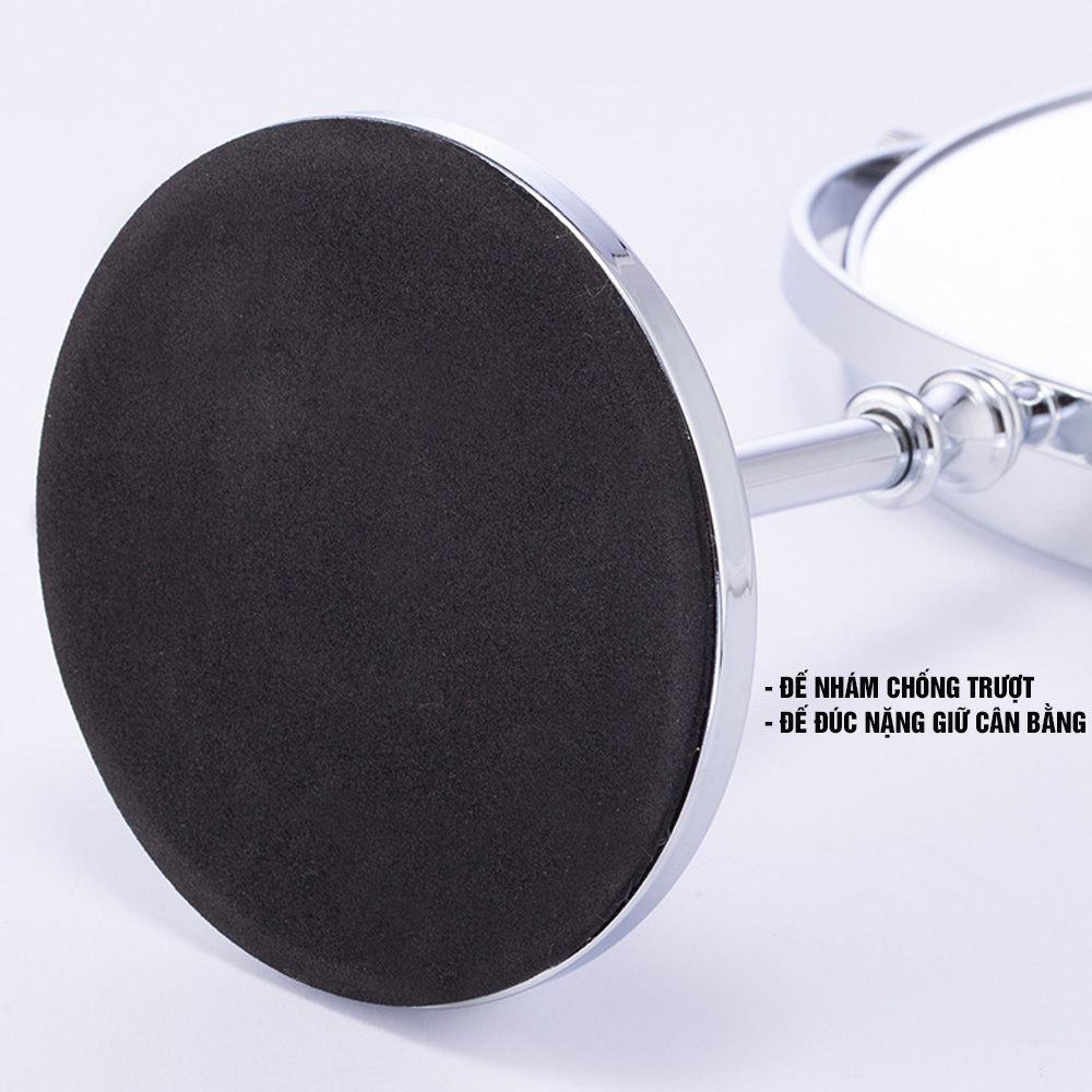 - Đế có cao su ở đáy tạo độ bám trên bề mặt phẳng, đủ nặng để giữ cân bằng cho gương.