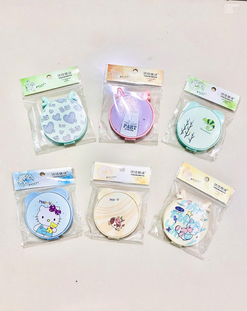 Họa tiết đẹp mắt: Với nhiều họa tiết đa dạng và màu sắc tươi sáng, chiếc gương này không chỉ giúp bạn chỉnh sửa trang điểm mà còn là phụ kiện làm đẹp, mang lại nét sinh động và vui tươi cho không gian của bạn.