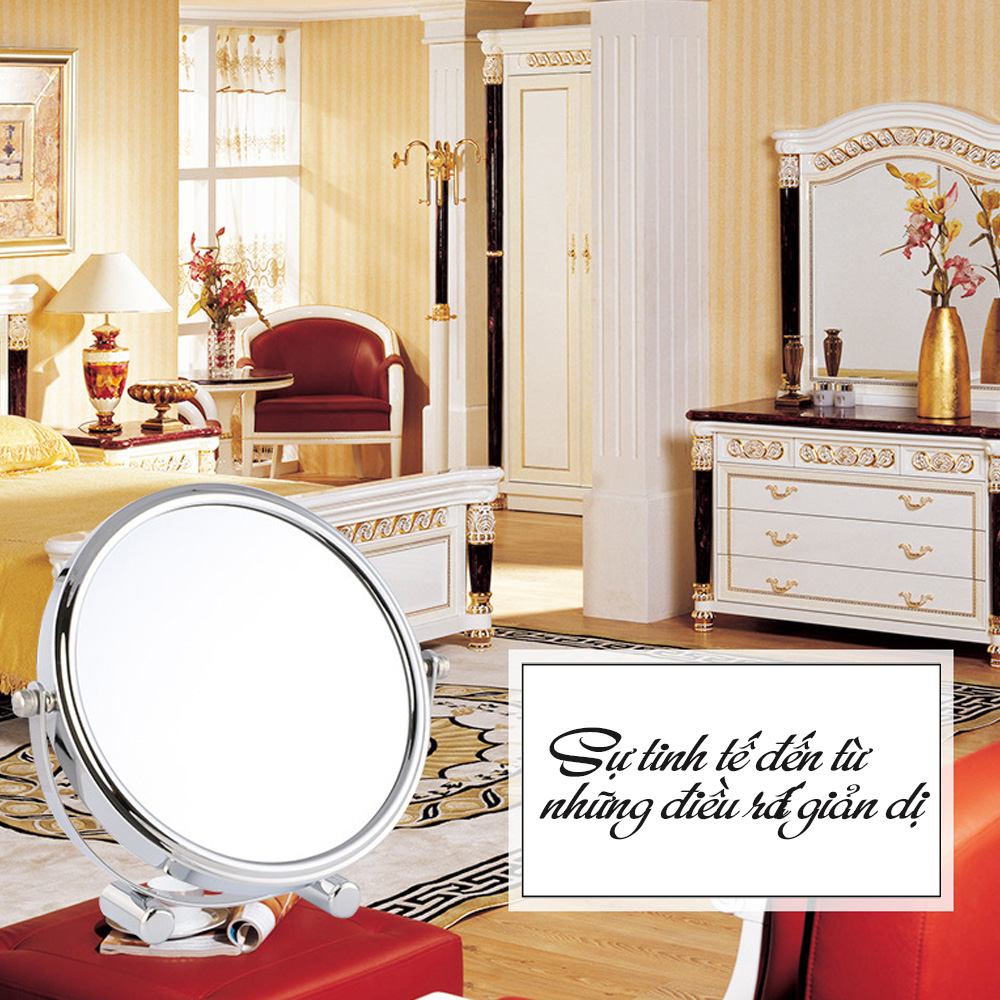 Gương trang điểm để bàn Roman, Crom, phóng đại zoom x3, 2 mặt xoay siêu nét Minh House Lưu ý: Quý khách chọn đúng Size, loại gương nhé. - Mẫu 1: Gương có chân, -
