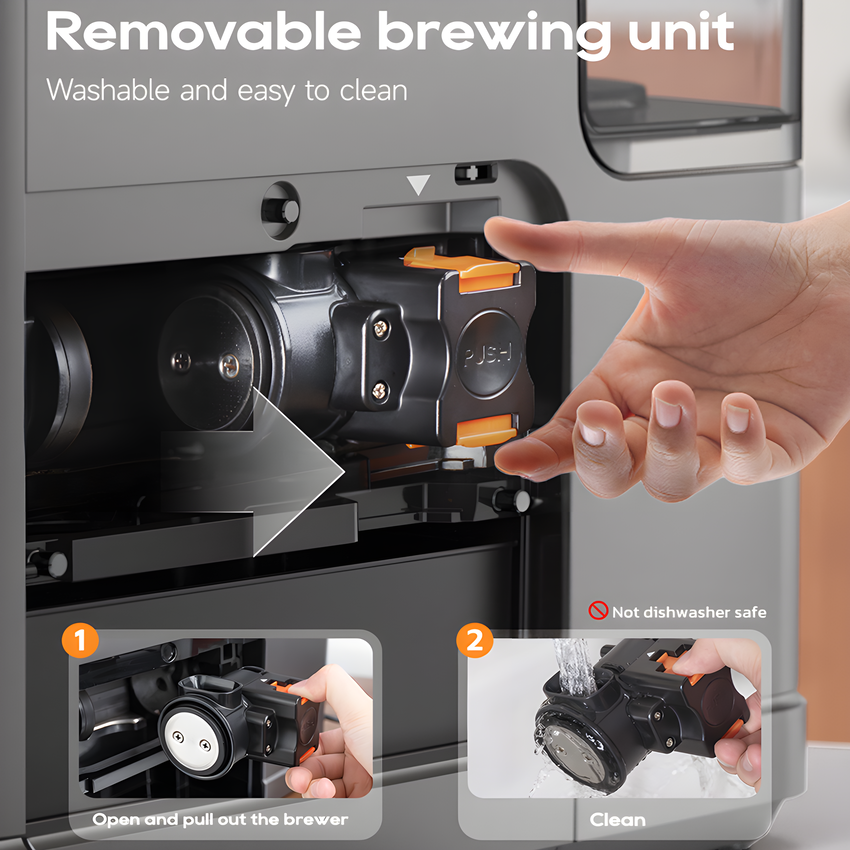 - Được thiết kế chú trọng đến tính hiệu quả, HiBREW H16 có thời gian làm nóng nhanh, đảm bảo cà phê sẵn sàng được pha nhanh chóng. Điều này đặc biệt có lợi trong môi trường văn phòng bận rộn, nơi nhân viên có thể có ít thời gian nghỉ giải lao. Dễ dàng vệ sinh, bảo trì