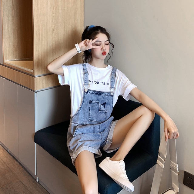 [ Shopee haul ] Quần yếm bò ngắn phong cách Hàn Quốc - baby , cá tính | cô tấm shopee