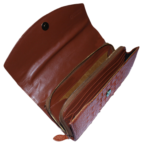 Ví/Bóp nữ da bò Huy Hoàng vân cá sấu lớn 3 gấp màu nâu đỏ 3154
