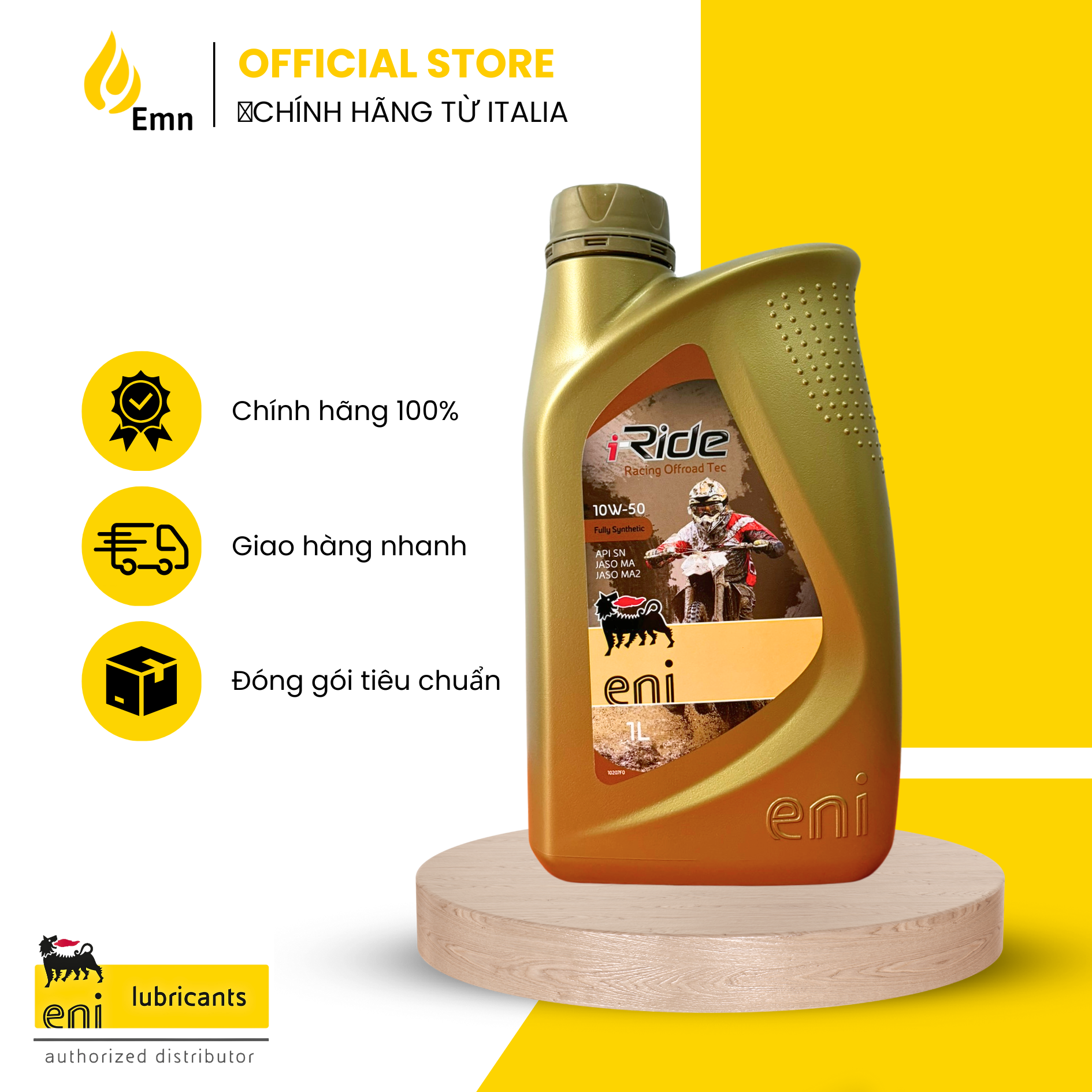 Mua tại TiktokEni Racing OffRoad 10W50 là dầu nhớt bôi trơn động cơ tổng hợp hoàn toàn hàng đầu với công thức được thiết lập và phát triển để đáp ứng các yêu cầu bôi trơn cho động cơ 4 thì tiên tiến được trang bị trong các xe offroad (cào cào). Tính chất . Cấp nhớt: JASO MA, MA2 | API SN . Chỉ số nhớt: 160 . Phân loại: Nhớt tổng hợp toàn phần (Fully Synthetic) Đặc tính . Hạn chế sự trượt của ly hợp tối đa, giúp cho xe vận hành hết công suất, kể cả trong môi trường xấu . Khả năng làm sạch động cơ, không để lại cặn bẩn trong khoang máy . Đáp ứng nhiệt độ cao và hiệu suất làm việc lớn Ứng dụng . Sử dụng cho hầu hết các xe phân khối lớn, đặc biệt là phân khúc Offroad (cào cào) . Khuyến khích sử dụng cho các dòng xe đã sử dụng thời gian lâu