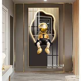 ✨(HCM)Tranh treo tường tráng gương phi hành gia bo viền vàng sang trọng kèm đinh