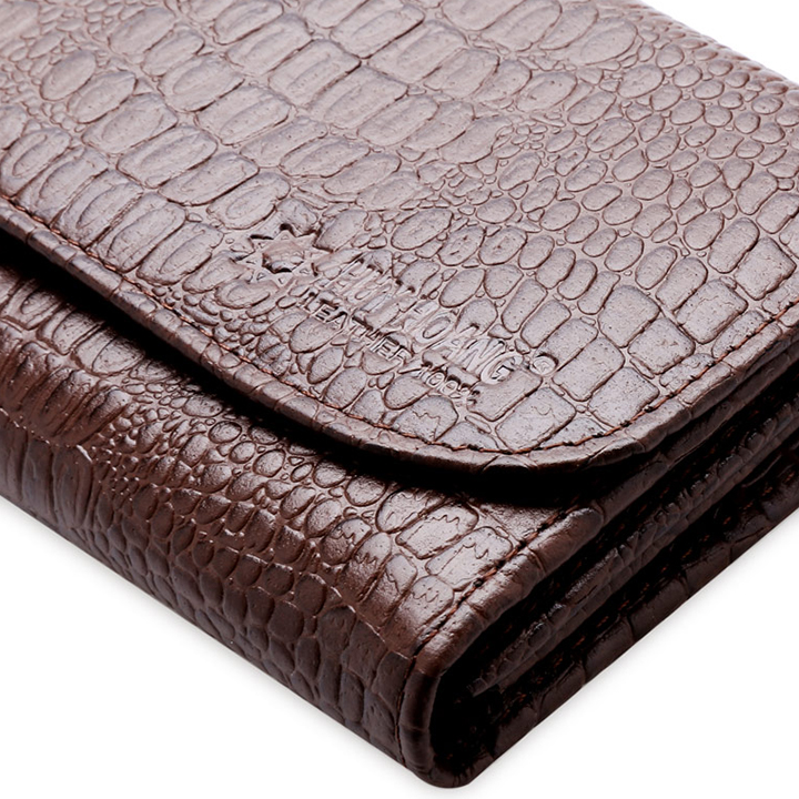 Ví/Bóp nữ da bò vân cá sấu Huy Hoàng 2 gấp màu nâu 3117