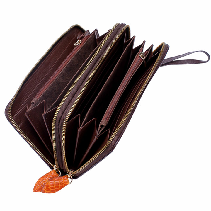 Ví da cá sấu cầm tay 2 ngăn khoá kéo | Ví cầm tay màu nâu đỏ
