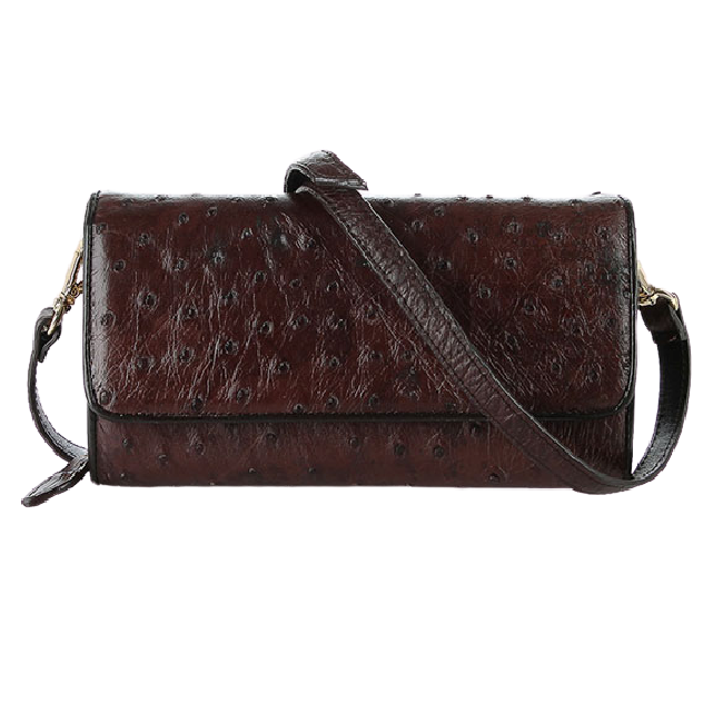 Bóp/Ví da đà điểu Huy Hoàng da bụng kiểu đứng màu nâu đất, nâu đỏ, đen, vàng bò 2408-09-10-18
