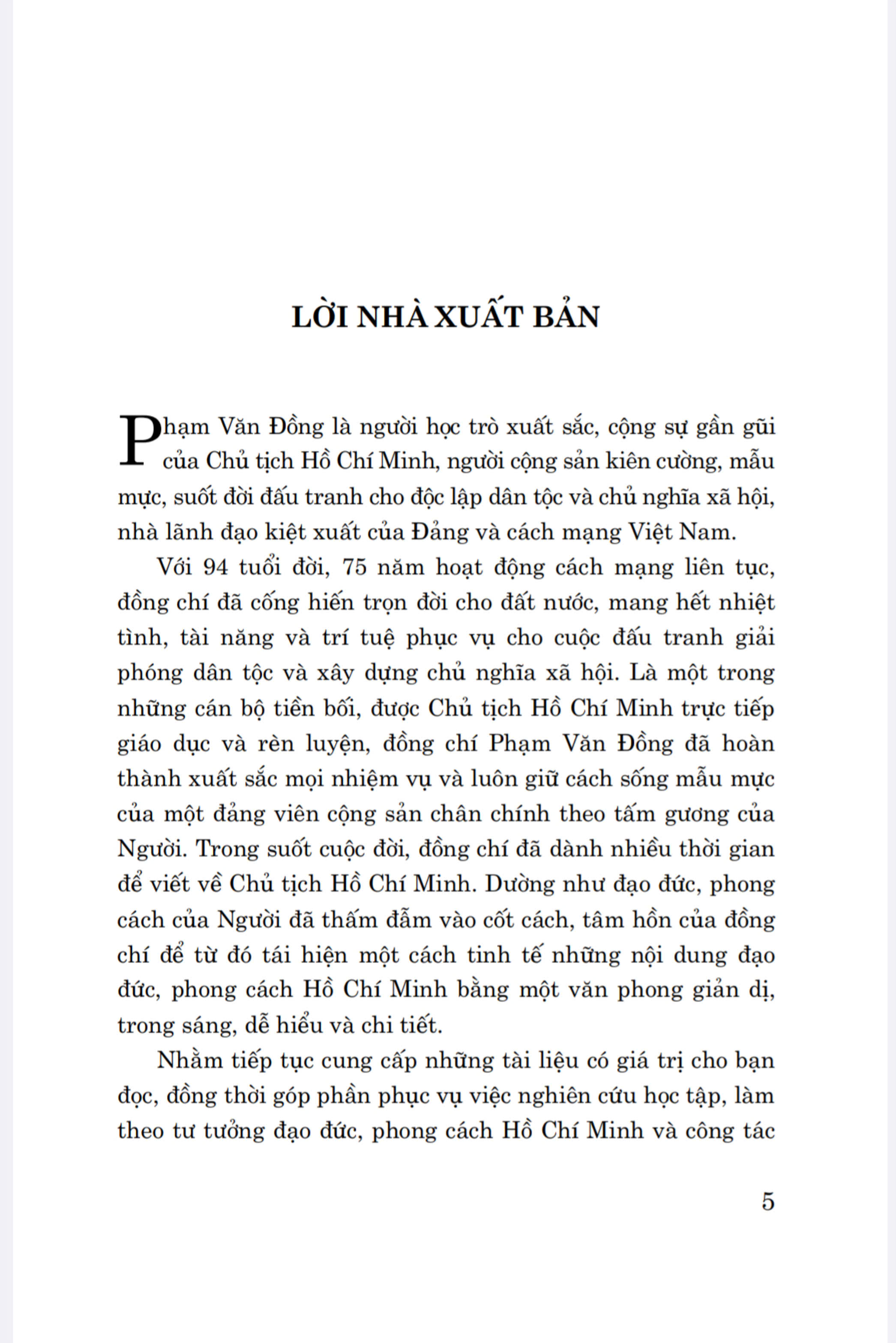 Cuốn sách trình bày những nhận thức của cố Thủ tướng Phạm Văn Đồng - người học trò xuất sắc của Chủ tịch Hồ Chí Minh về quá trình hình thành và nội dung cơ