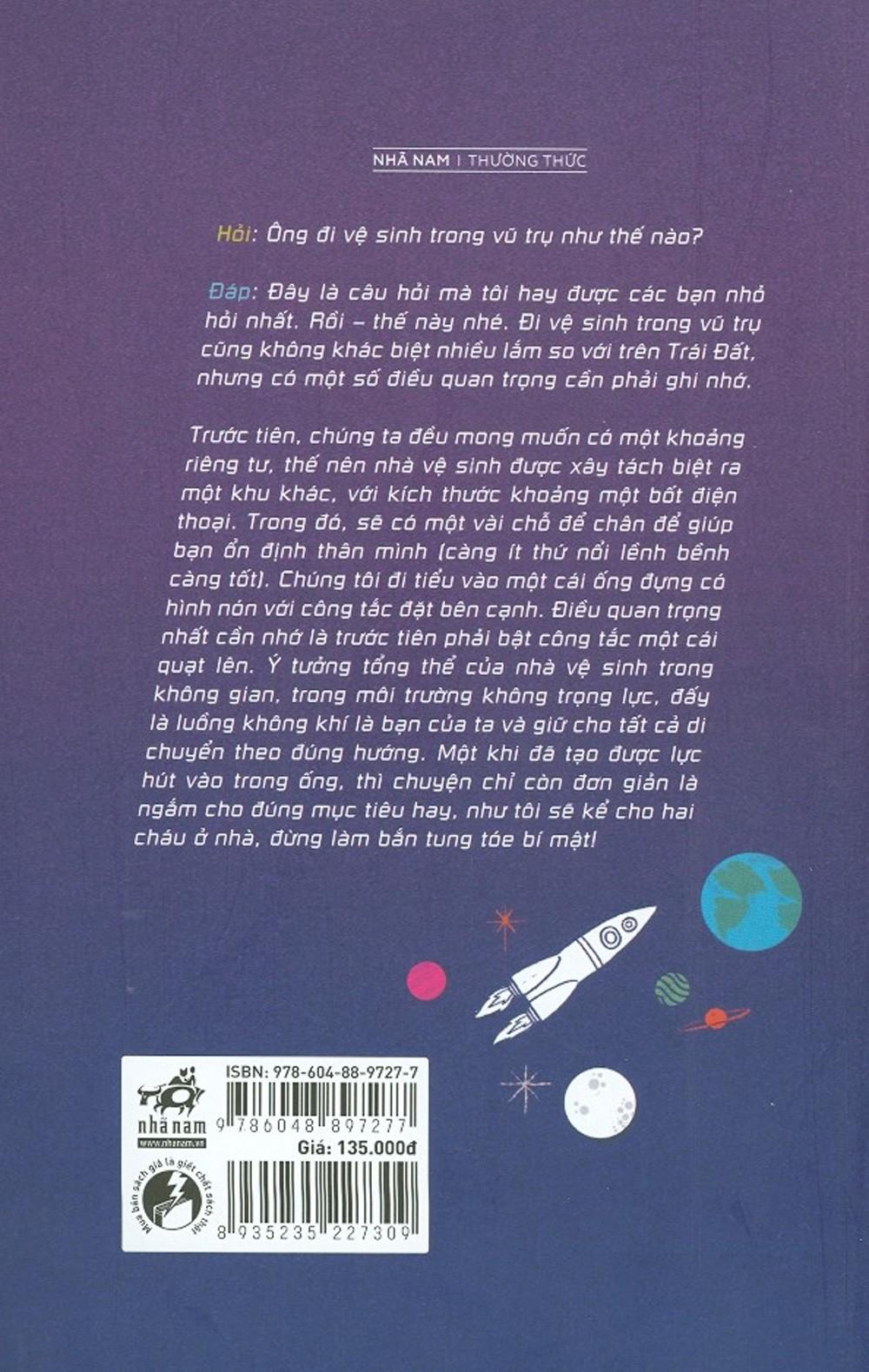 Những câu hỏi đầy thú vị về vũ trụ, cuộc sống trong không gian, về du hành lên vũ trụ được phi hành gia Tim Peake trả lời một cách thấu đáo, hài hước nhưng cũng hết sức khoa học. Cuốn sách sẽ giúp bạn hiểu thêm về cuộc sống của các nhà du hành vũ trụ.