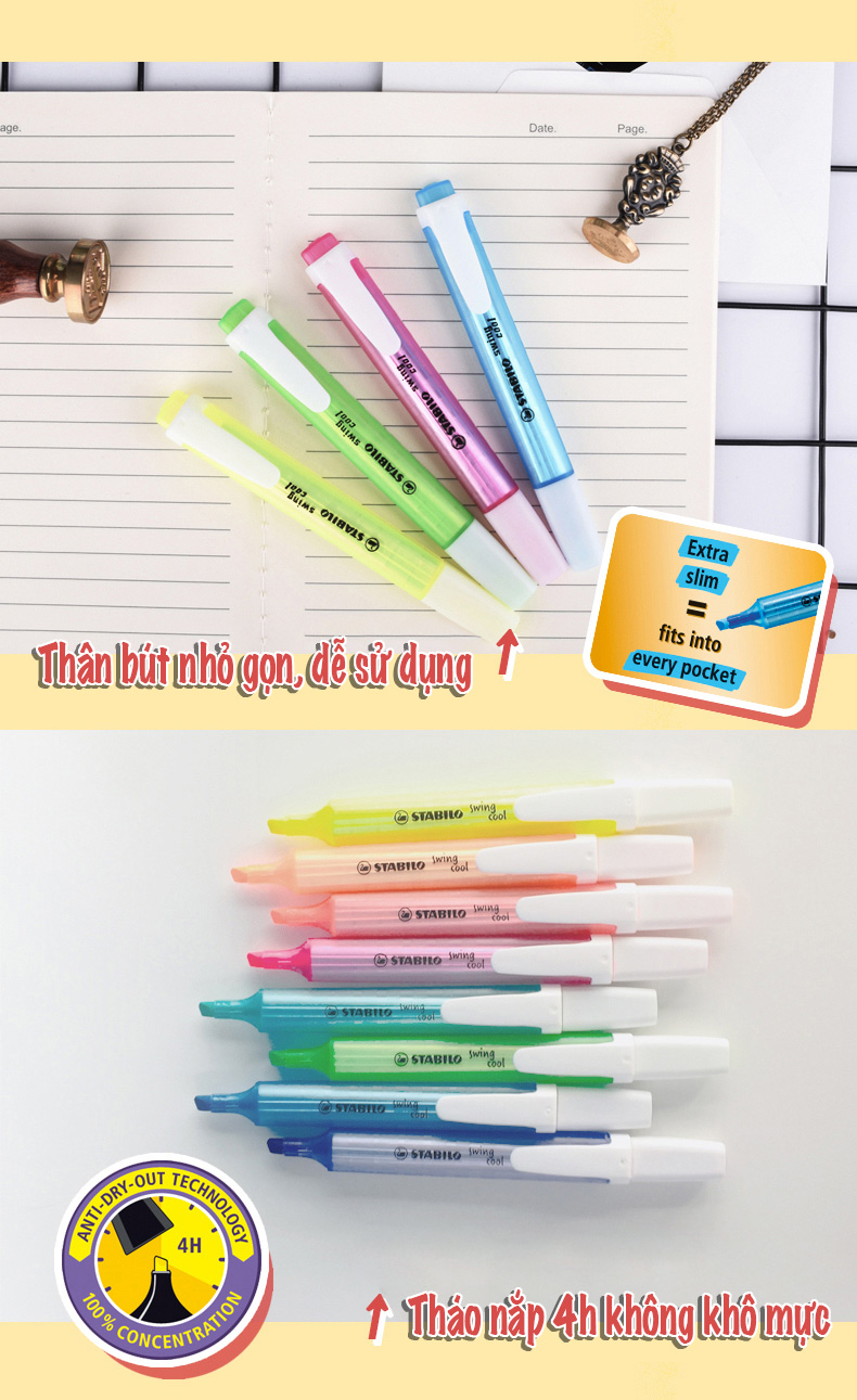 Bút dạ quang STABILO swing cool sản xuất tại Đức
