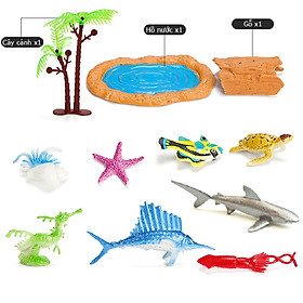 - Sản phẩm gồm 8 cá biển, 1 cây, 1 khúc gỗ, 1 hồ nước.