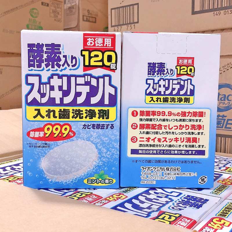 Xuất xứ: Nhật Bản Đóng gói: Hộp 120 viên Vỉ viên vệ sinh khay niềng răng trong Nhật Bản làm sạch khay niềng răng & các loại khi cụ nha khoa tháo lắp như hàm