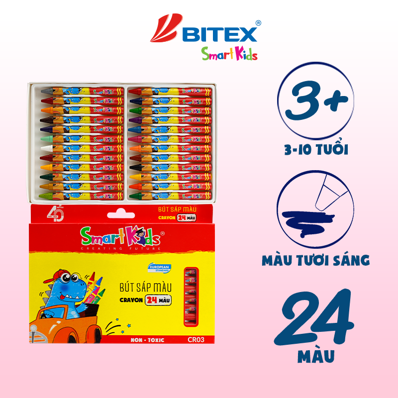 Sáp màu Dino 24 màu CR03 (24 màu/hộp) không chỉ giúp bé nhận biết về nhiều màu sắc khác nhau mà còn để trẻ tự do phát triển khả năng sáng tạo,pha trộn màu khi tô vẽ nâng cao năng khiếu mỹ thuật của m.ình