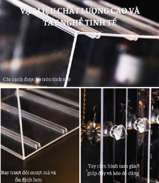 Hộp đựng trang sức, khuyên tai mica trong suốt dễ quan sát