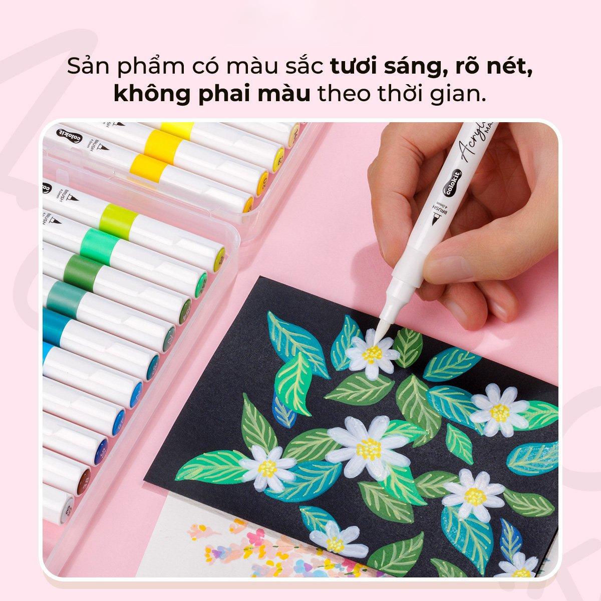 Hộp 28 Bút Màu Acrylic Đầu Brush - Colokit ACM-C021 Bút lông màu Acrylic Markers Colokit 14 màu với thiết kế đầu BRUSH linh hoạt đáp ứng được đa dạng nhu cầu sử dụng. Bút