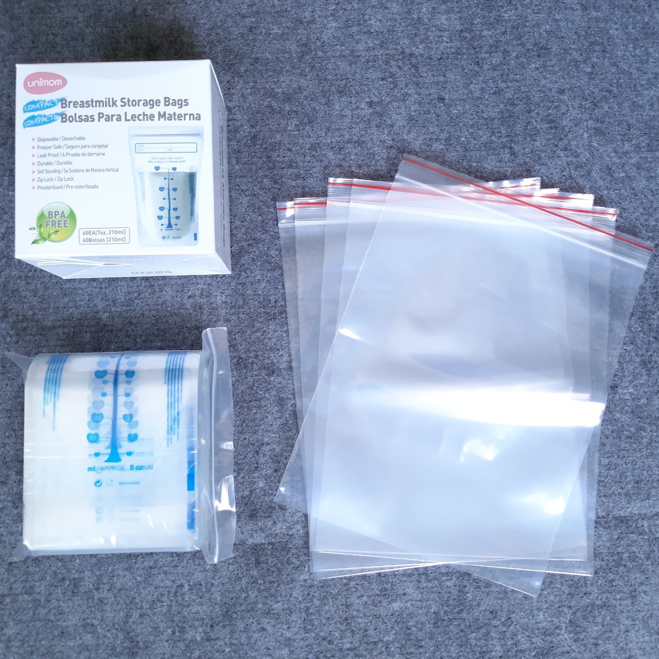 ✨Hộp 60 túi trữ sữa Unimom compact 210ml + tặng 5 túi zipper 18cm x 23cm