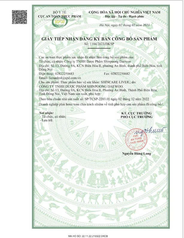 Mua tại TiktokTHỰC PHẨM BẢO VỆ SỨC KHỎE: SHINCARE LIVER THÀNH PHẦN Mỗi viên nén bao phim (936 mg) chứa: Chiết xuất quả cây Kế Sữa (Milk thistle Extract) .350 mg (tương đương Silymarin 140 mg) L-Glutathione ....30 mg Vitamin C (Acid L-ascorbic) ..30 mg Vitamin E (DL-alpha-tocopheryl acetat) ..30 mg Kẽm (dưới dạng Kẽm gluconat) ....10 mg Vitamin B1 (Thiamin mononitrat) .2 mg Vitamin B2 (Riboflavin) 2 mg Vitamin B6 (Pyridoxin hydroclorid) 2 mg QUY CÁCH ĐÓNG GÓI Hộp 1 chai x 90 viên CÔNG DỤNG Hỗ trợ giải độc gan, bảo vệ gan. ĐỐI TƯỢNG SỬ DỤNG Người lớn có chức năng gan kém, uống rượu bia có hại cho gan. CÁCH DÙNG Người lớn: Uống 1 viên/lần, ngày 2 lần, uống với nước sau khi ăn. BẢO QUẢN Trong bao bì kín, ở nơi khô, tránh ánh sáng trực tiếp, nhiệt độ dưới 30ºC. HSD 36 tháng kể từ ngày sản xuất. LƯU Ý