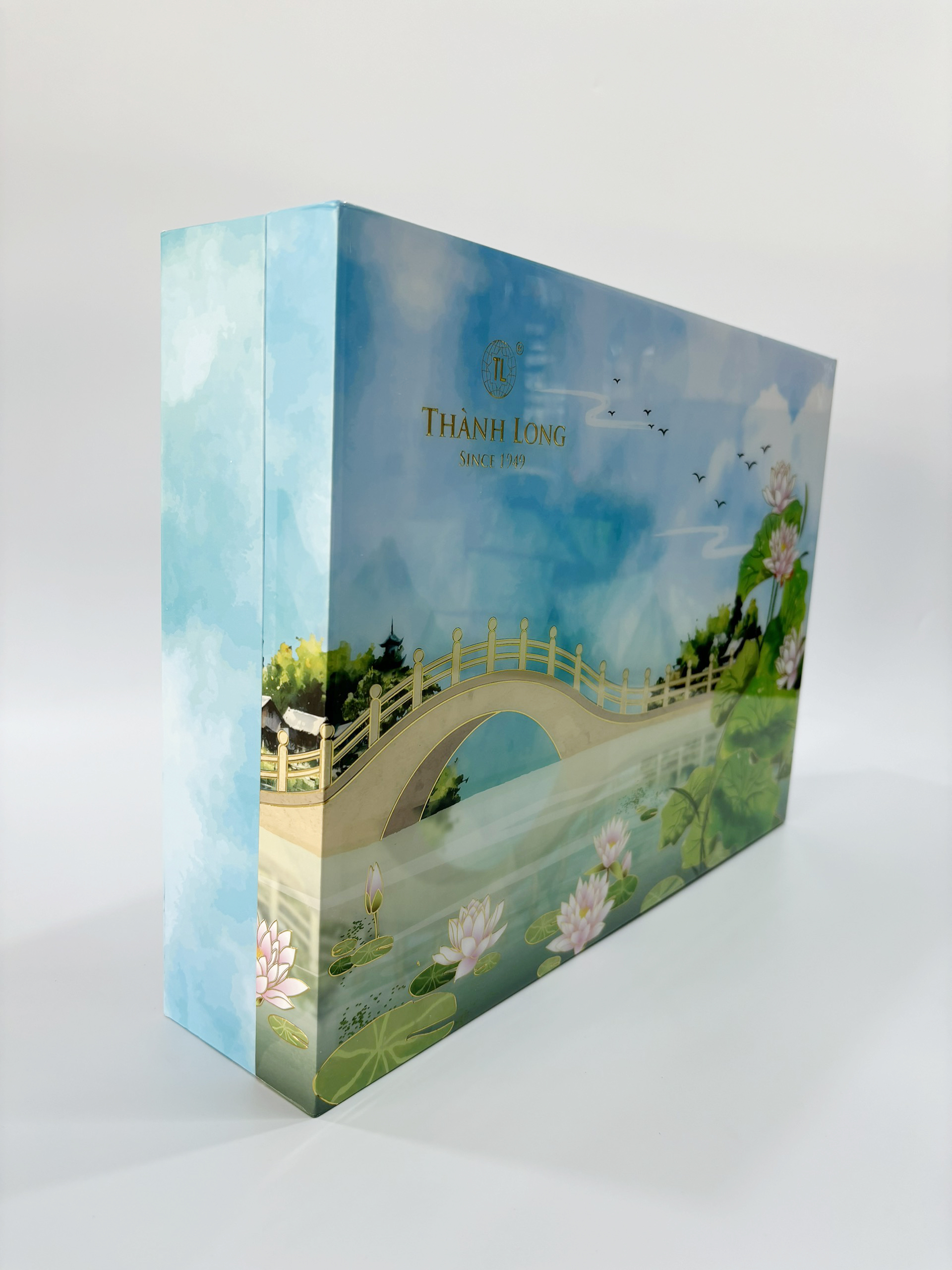 Với sản phẩm tươi sống, trọng lượng thực tế có thể chênh lệch khoảng 10%. Hộp bánh trung thu 4 bánh 2 trứng 270g - Thịnh Vượng - Thành Long 1080g - tặng 1 hộp