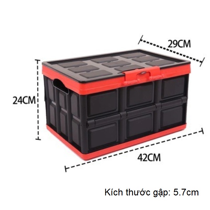 ✨Hộp để đồ đa năng gấp gọn cốp sau ô tô dung tích 30 lít, Kích thước: Sâu x Rộng x Cao (42cm x 29cm x 24cm), Màu đen viền đỏ, KM309-30