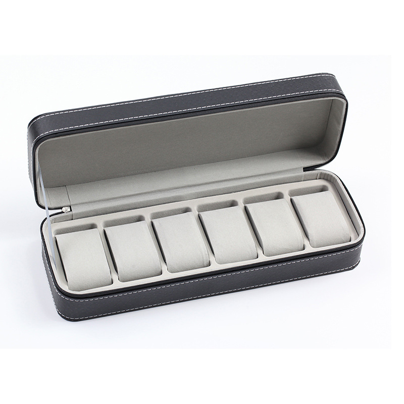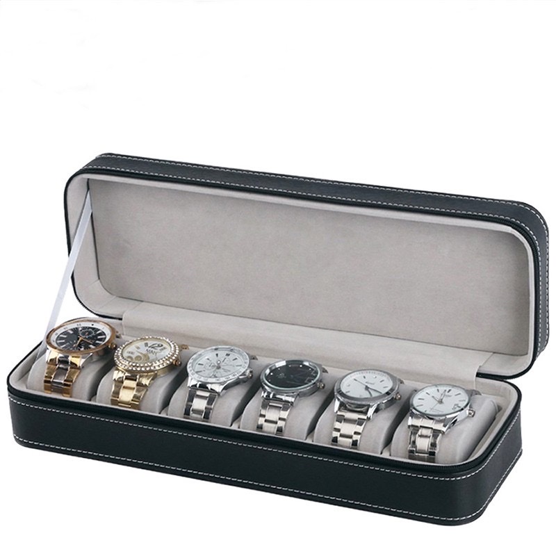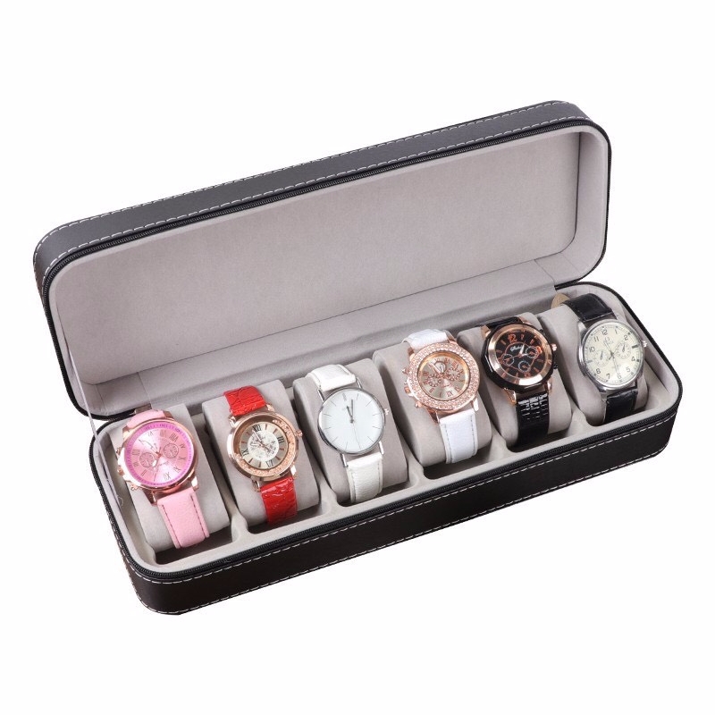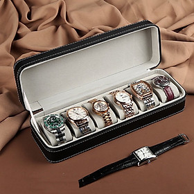 - Hộp Đựng Đồng Hồ 6 Ngăn SAIKE S606 Vỏ Da Có Khóa Kéo