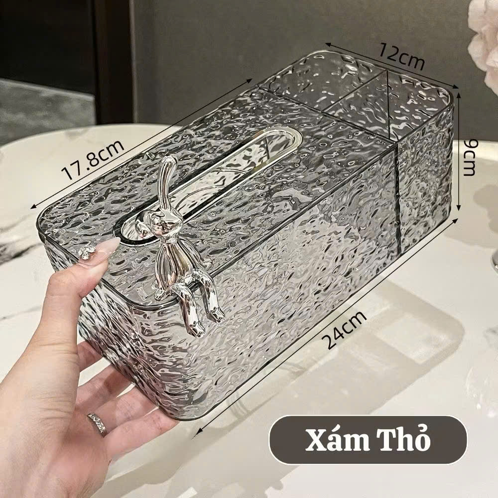 Hộp Đựng Khăn Giấy Vân Kim Cương Trong Suốt Tích Hợp Khay Đựng Đồ Đa Năng Charm Thỏ Sang Trọng