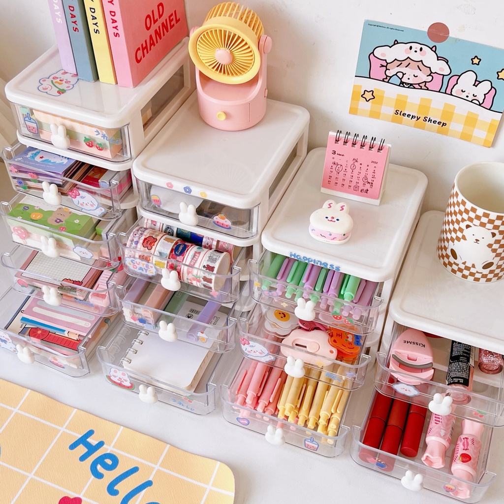 ✨Hộp Kệ Để Bàn Trong Suốt Bảo Quản Văn Phòng Phẩm, Mỹ Phẩm, Đồ Lặt Vặt, Phụ Kiện Hình Thỏ Mini Dễ Thương Không Kèm Sticker
