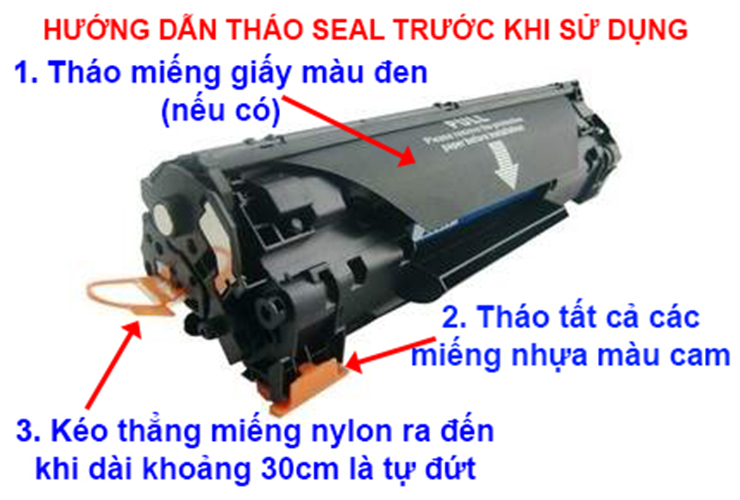 - Hộp mực 16A mới đã có sẵn mực, khách hàng chỉ cần tháo seal niêm phong là sử dụng được ngay.