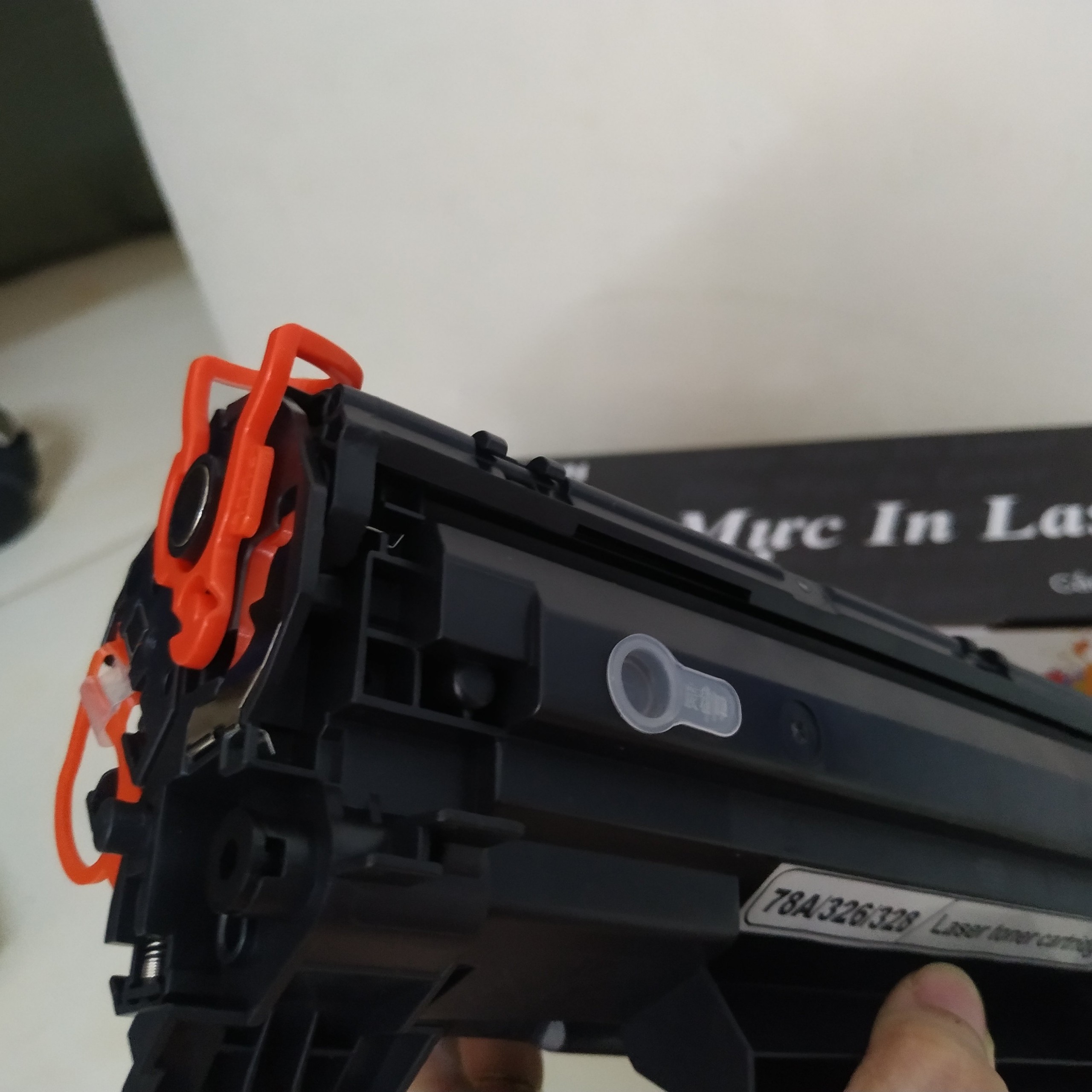 Bước 2 : Tháo hộp mực in ra khỏi bao bì, Lắc hộp mực từ bên này sang bên kia 4-5 lần để phân bố lại lượng mực, vì trong quá trình vận chuyển có thể mực bị dồn về một phía.