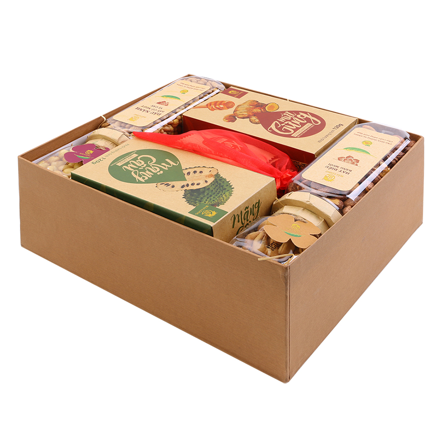 Hộp Quà Tết Thực Phẩm Cao Cấp Hải Long 05A các loại hạt và trái cây có vị ngon ngọt với những hương vị từ cay, chua cho đến ngọt, bùi đặc trưng cho hương