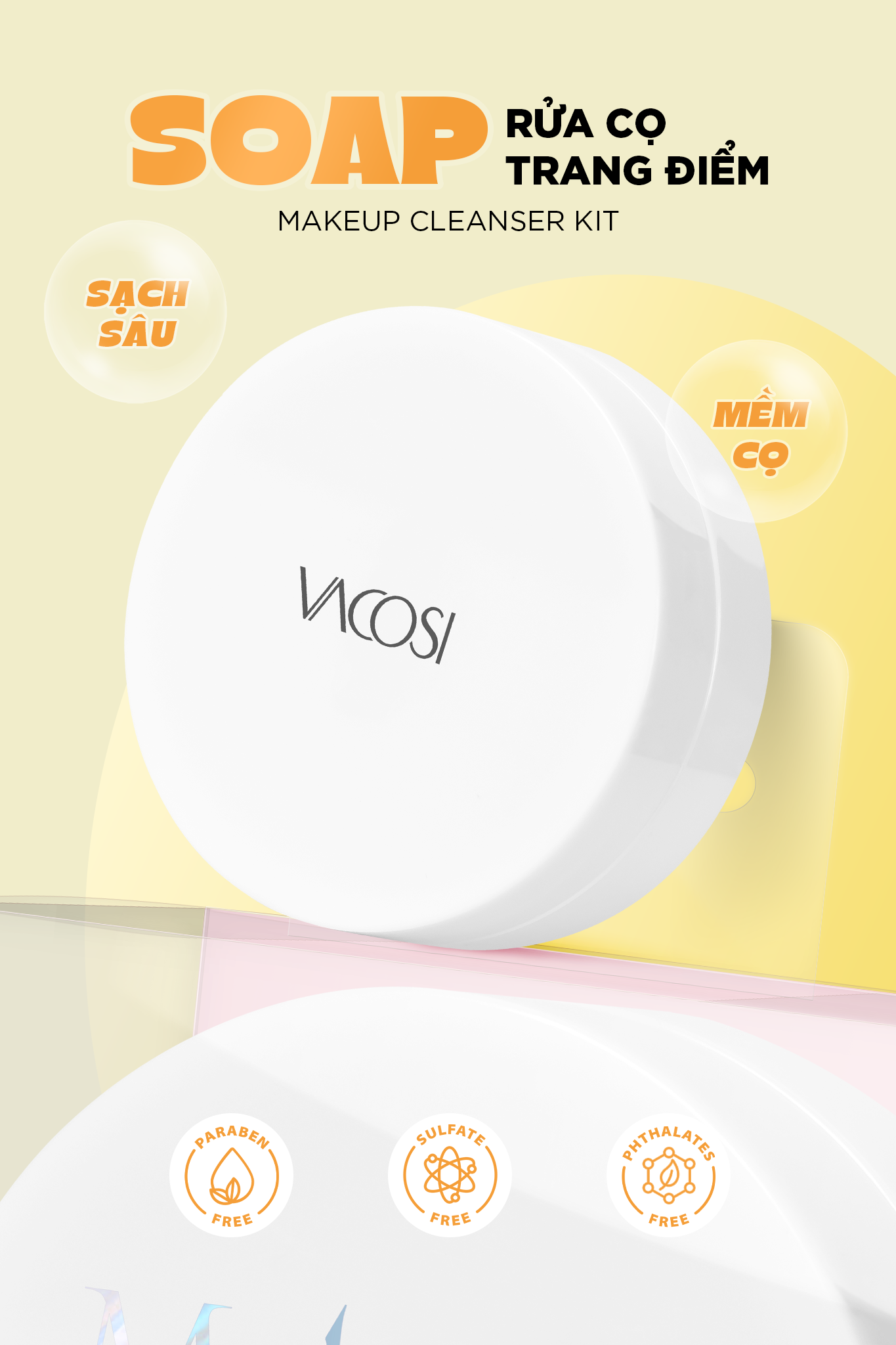 VACOSI MAKEUP CLEANSER KITSOAP & DỤNG CỤ RỬA CỌ TRANG ĐIỂMBộ vệ sinh cọ bao gồm (Soap và miếng Silicone chuyên dụng) Miếng rửa cọ silicone chuyên dụng: Thiết kế các gai nhỏ với nhiều kích cỡ khá...