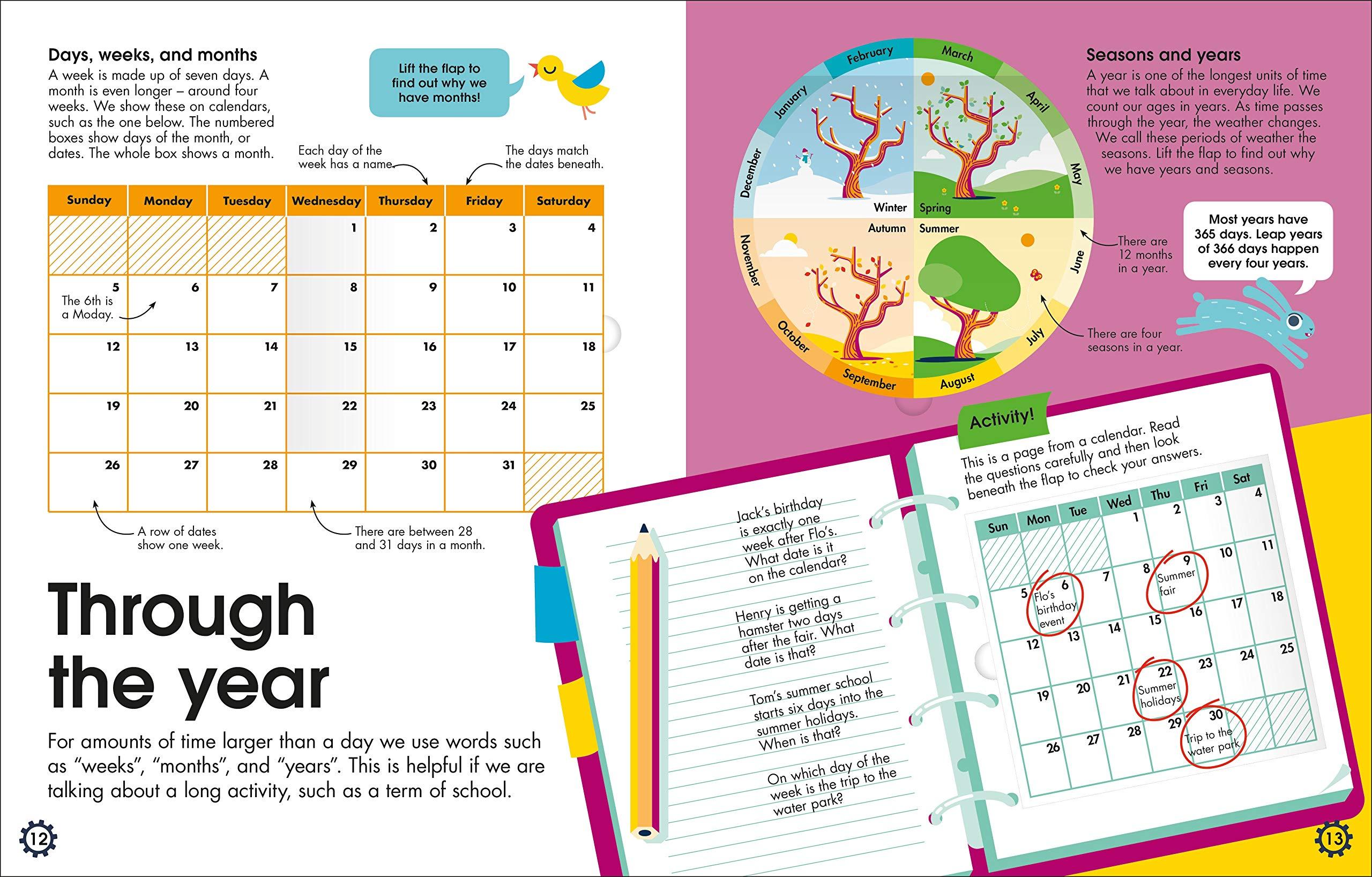 A fun first guide to how to tell the time, this bright and bold lift-the-flap activity book features a clock with moveable hands! Telling the time is a key topic for early learners. This charming and colourful book helps kids understand the basics of telling the time.Fully interactive, the book features lift-the-flap puzzles that help kids to relate telling the time to everyday life - posing questions such as "It's 8.15 - is it time for breakfast?", "Does it take 2 minutes to brush your teeth?". How to Tell the Time introduces kids to how we measure time using seconds, minutes, hours, days, months, and years. It gets kids learning to tell and write the time to the nearest five minutes. There is a flap attached to the front jacket that opens to reveal an amazing clock with moveable hands. Quiz questions that relate to the clock are found sprinkled throughout the book, encouraging kids to move the hands on the clock face and tell the correct time. Telling the time is often a subject that children find hard to grapple with. This book is just what those children need, as it tackles the subject in a fully interactive and playful way .