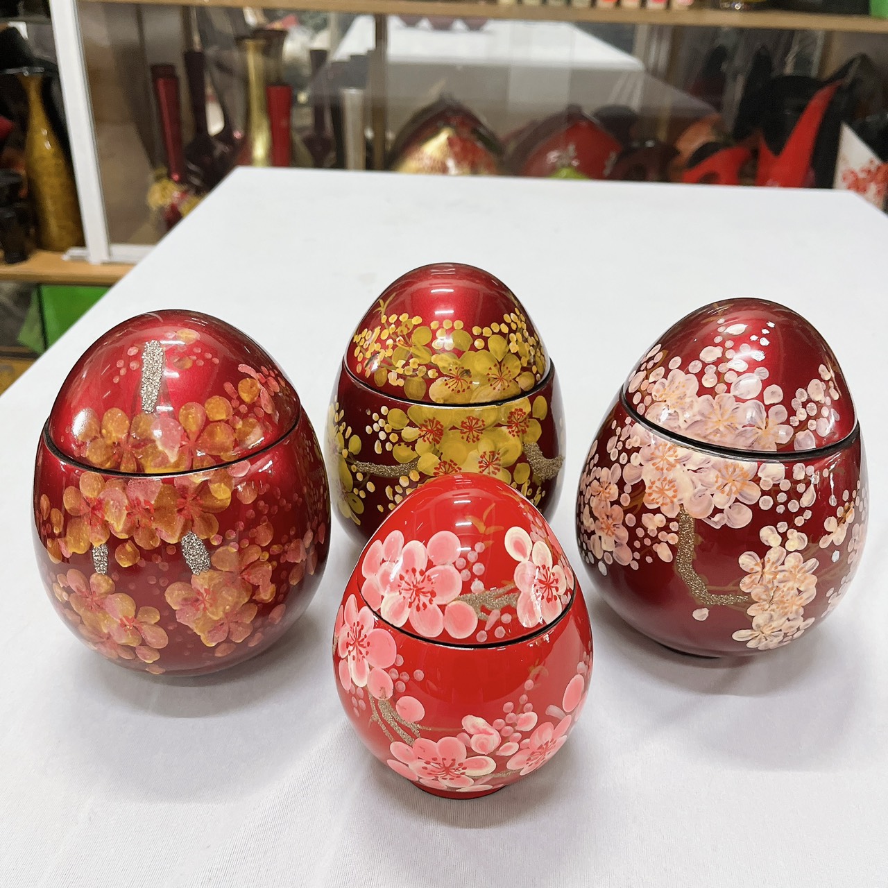 Sản phẩm được làm từ cốt gỗ nguyên cây, mẫu mã đa dạng phong phú, từ cẩn trứng đến vẽ tay tỉ mỉ, họa tiết hoa văn thanh lịch, nhiều màu sắc đa dạng, bên ngoài phủ nhiều lớp sơn để tạo độ sáng bóng.